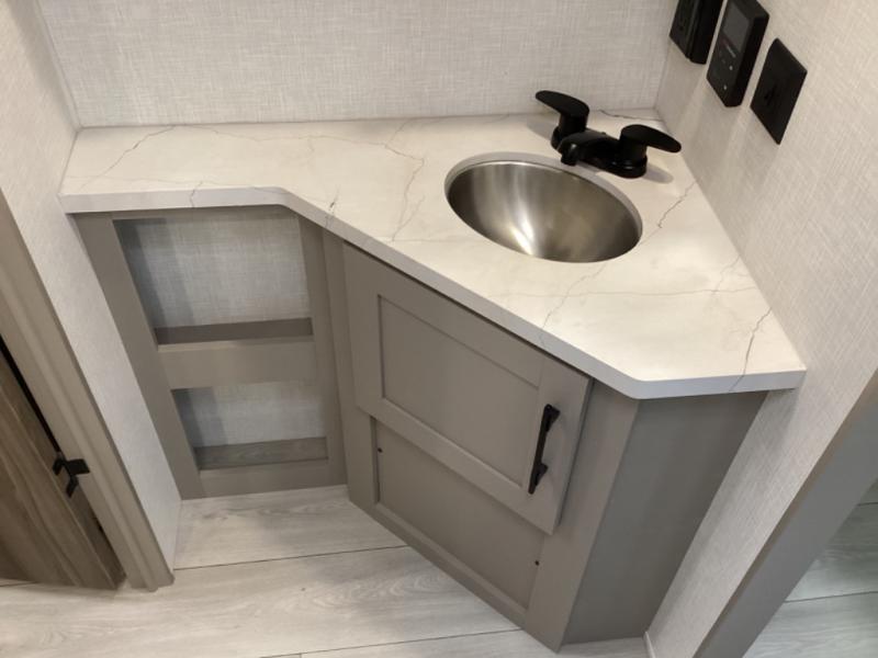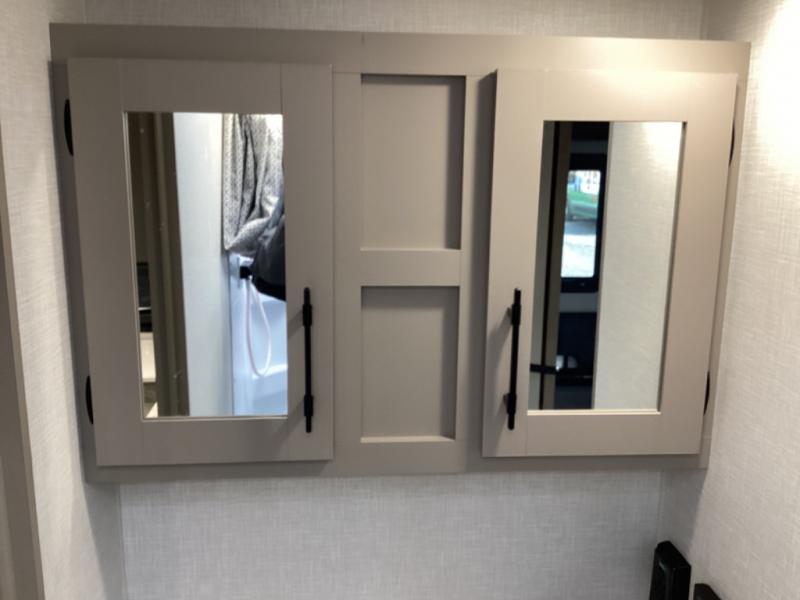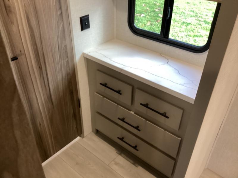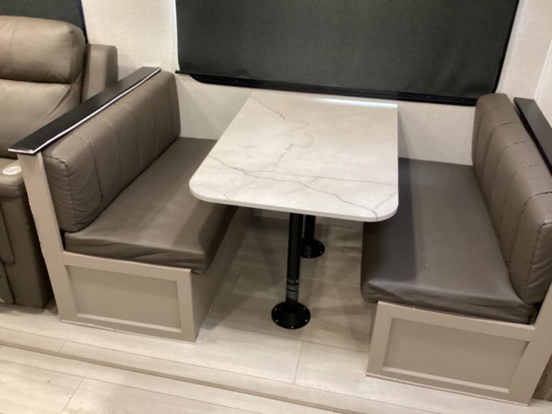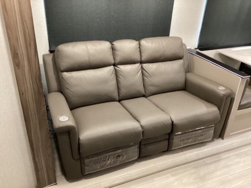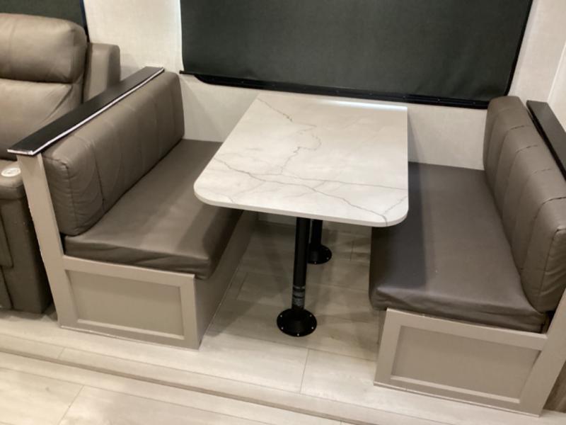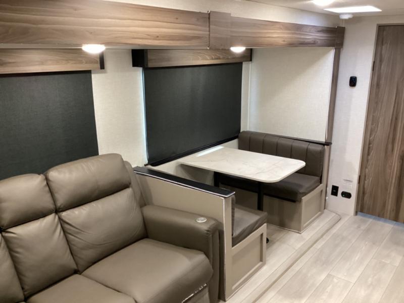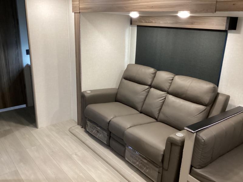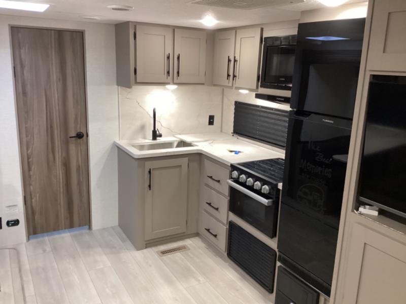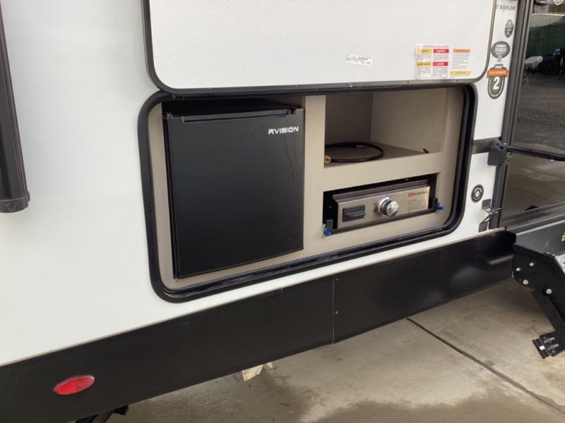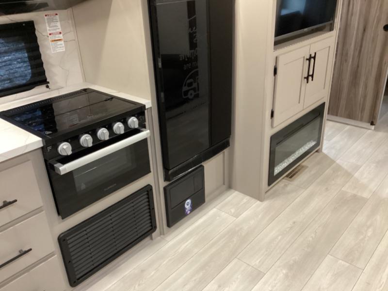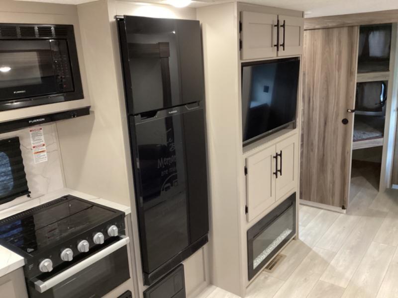 Your family will love this travel trailer. Sleep comfortably with your partner in the amazing queen bed situated in the front room, which has dual wardrobes perfect for storing your clothing. This unit is fitted with a full walk-through bathroom and a half bathroom in the rear part of the trailer, both ideal for refreshing yourself on a hot day. You can relax a little in the 70" sofa equipped with a 34" fireplace in front of it allowing you to enjoy a cozy atmosphere. You can also cook delicious meals in the incredible kitchen, fitted with a microwave, three cooktop burners, a walk-in pantry with coat hooks, a sink, a dinette, and a refrigerator, ideal for cooking any delicious dish. Finally, you will find an outdoor refrigerator and griddle excellent for cooking under the stars with your family, and a pass-through storage perfect for placing your stuff.