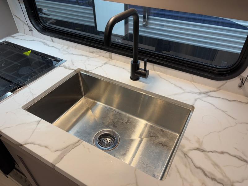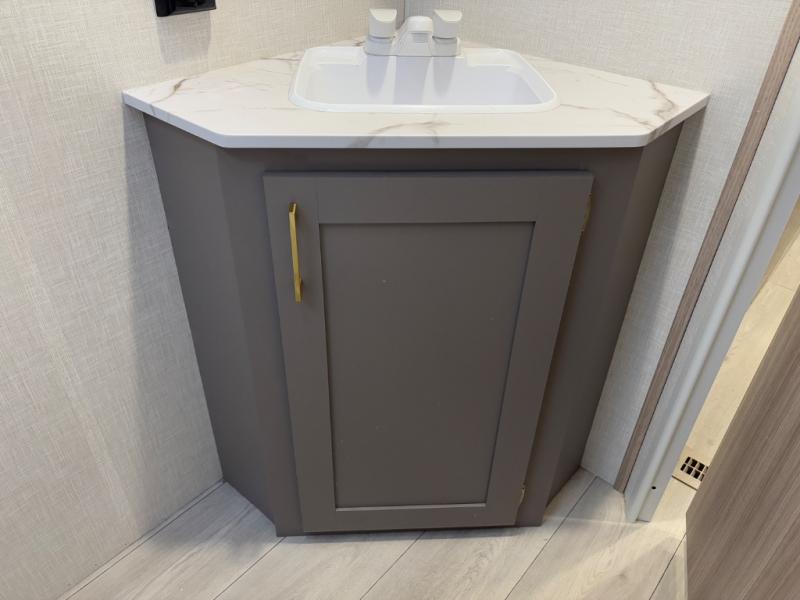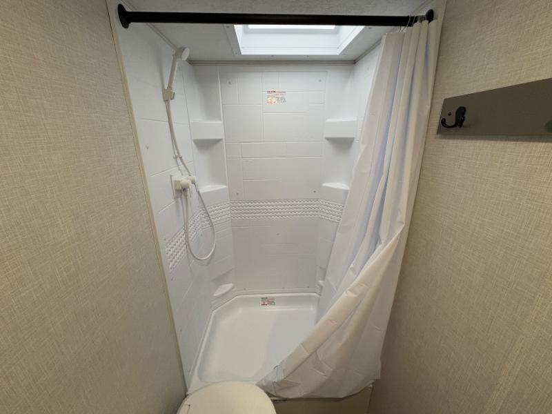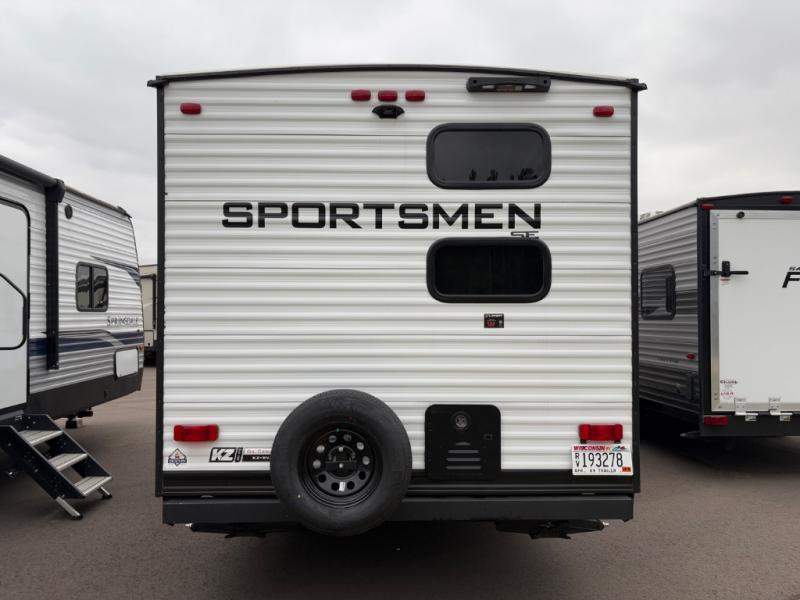 Each Sportsmen SE travel trailer and toy hauler by KZ is constructed with KZ exclusive tough shield exterior metal, a one-piece seamless walk-on Tufflex roofing material, and diamond plate rock guard to protect your unit from road debris. You will appreciate the extra large baggage doors for stowing away your gear when not in use, and tinted windows to help keep the harmful sun rays out plus keeping it cooler inside. Some of the exterior conveniences found in the mandatory Advantage Package are the solid folding steps with a large folding grab handle for easy entry and exit, a full glass friction hinged entry door, plus an exterior shower for your pets or to rinse off before you head inside. You'll also appreciate the nitrogen-filled tires, solar and backup camera prep, plus a Leash Latch with a bonus beverage opener. You'll feel right at home inside with linoleum flooring throughout, a 13,500 BTU air conditioner, large overhead cabinets, a shower surround, and much more!