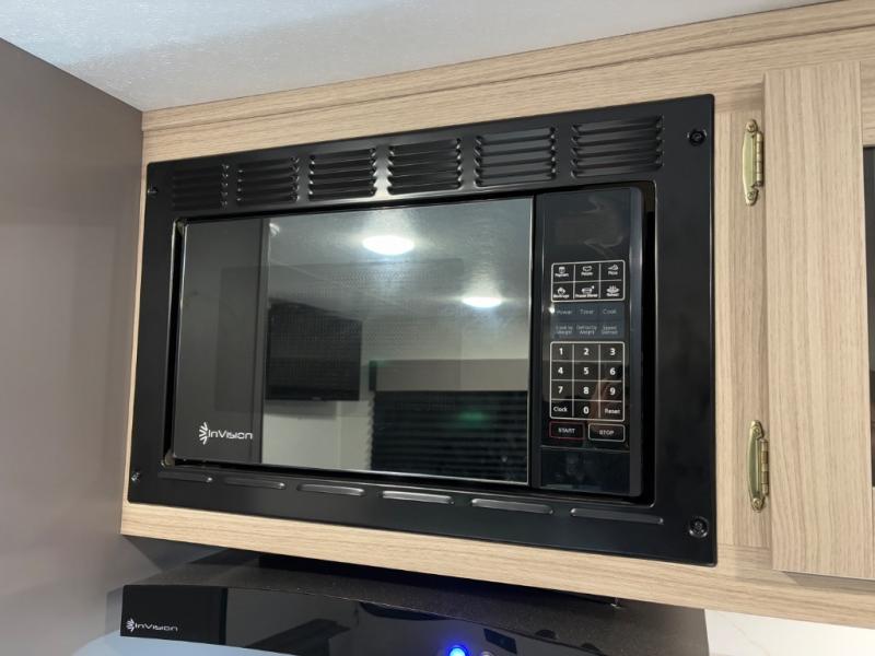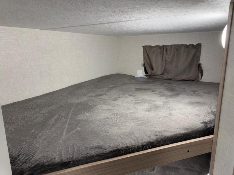You can comfortably sleep eight people each night in this travel trailer, so invite your whole crew along! The little ones will love the double-size bunks, and the full bath is close by for convenience. You and your spouse can take the front private bedroom that includes a queen bed and dual shirt closets, and any other guests can sleep on the sofa or booth dinette. Prepare a hearty breakfast on the three burner cooktop each morning, and the sink covers will provide you with more counter space to cut up fresh fruit! This model includes plenty of storage space, including an exterior storage door plus a pass-through storage for fishing poles and tackle boxes!