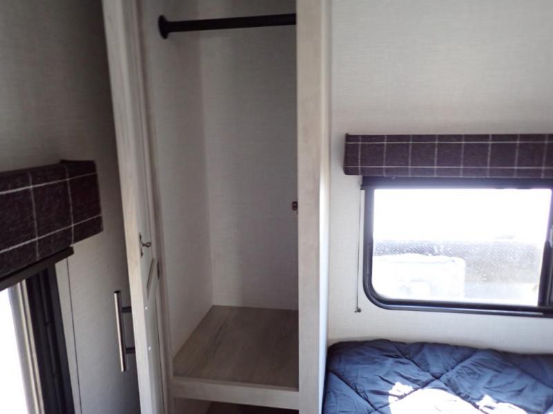 Wow! Take a look at this travel trailer with two private bedroom that include queen beds and space to store your clothes. Each room also has a TV mount if you choose to bring along your own television for late-night movies in bed. The main living area is spacious with the large slide out, and here you can relax on the sofa or around the U-shaped dinette. This model also includes a full bath with a 40" shower that will allow you to clean up each day.