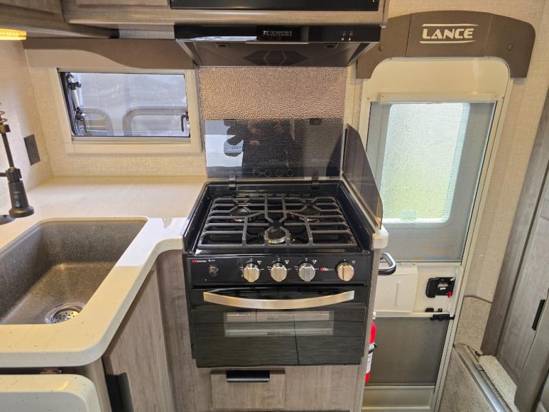 There's no better time than now to start camping in a Lance truck camper! Each model is constructed with a full aluminum frame, a one-piece roof membrane, and block foam insulation throughout to enjoy four seasons of camping. You'll appreciate a keyless entry, an exterior shower, electric remote camper jacks, and eye-catching mountain scene graphics. Inside, there are flat panel cabinet doors, Euro-ply non-toxic cabinet construction, a combo blackout screen and shade, plus a convenient key hanger. There is also a dual pane bath skylight, a solid surface galley countertop, a pop-up charging tower, plus many more interior comforts. And don't forget to check out the select optional features available to further customize your truck camper!