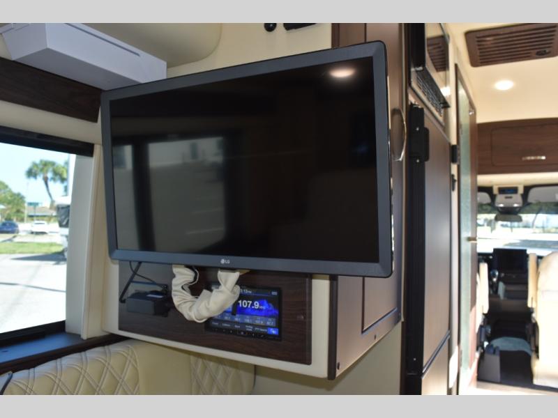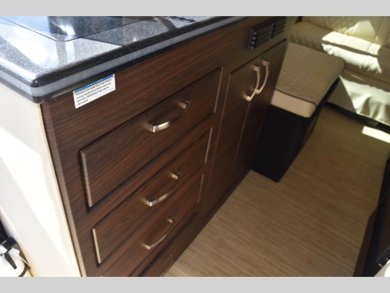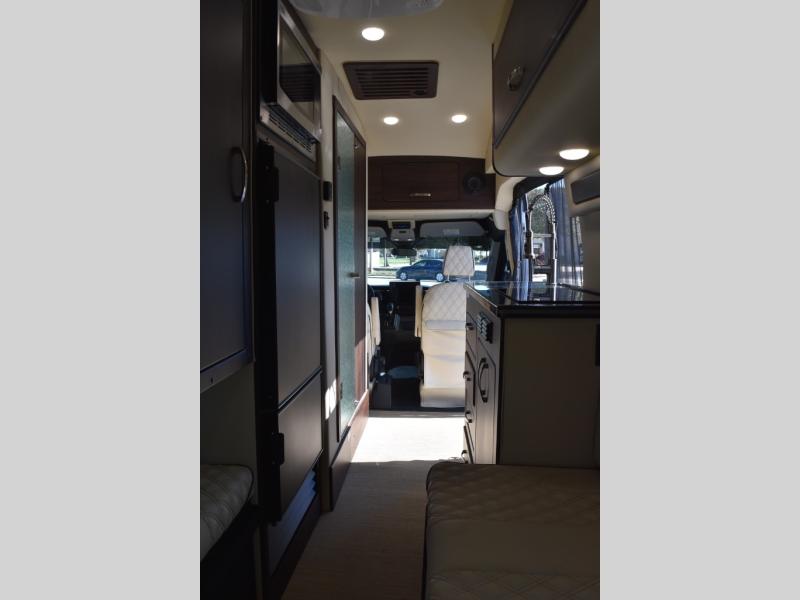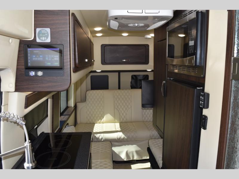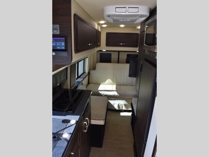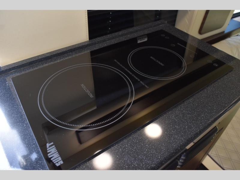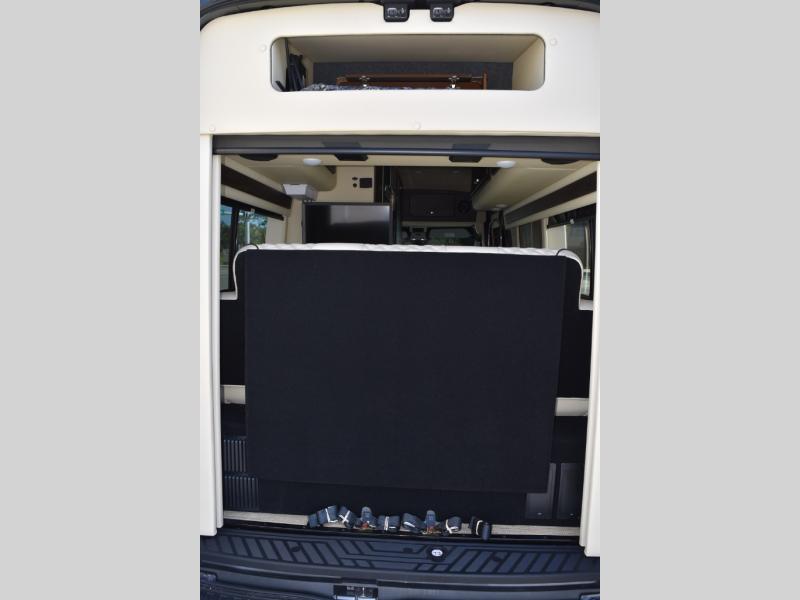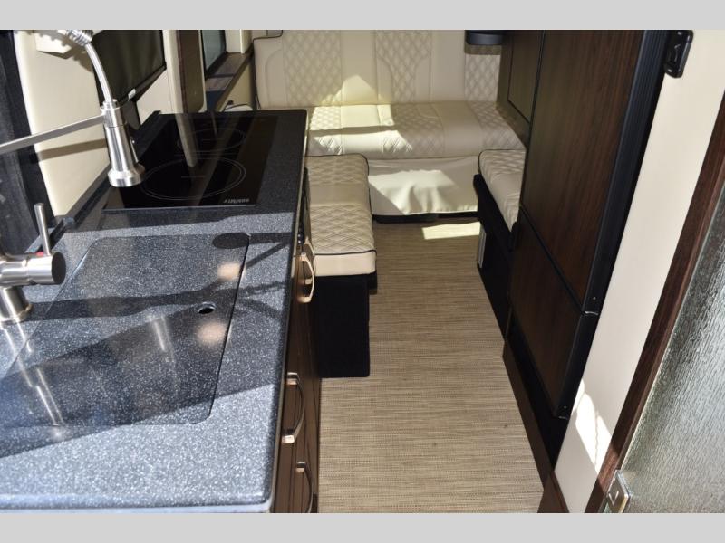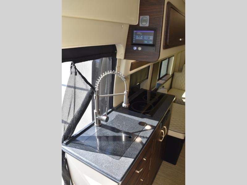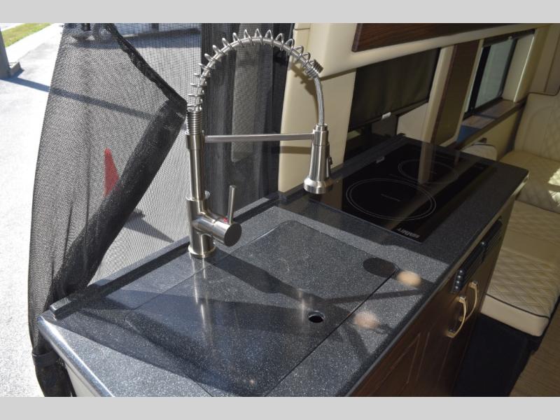 Forget about the way that you used to travel and begin traveling like a pro with this Class B gas motorhome! This coach has it all! You will find a wet bath with a retractable clothes line for staying clean, a rear power folding sofa bed for getting a full night of rest, a galley kitchen with an induction cooktop and stainless steel microwave for preparing easy meals, and a rear HDTV for entertaining yourself after a long day of traveling. Some of the other additions that are sure to make your life easier are the pull-out pantry below the countertop, the cab swivel seats, the climate controlled roof fan, and more!