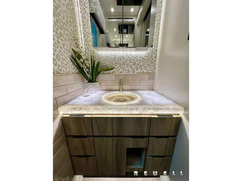 Corian top on dinettePremium quartz countertops at galley and buffet