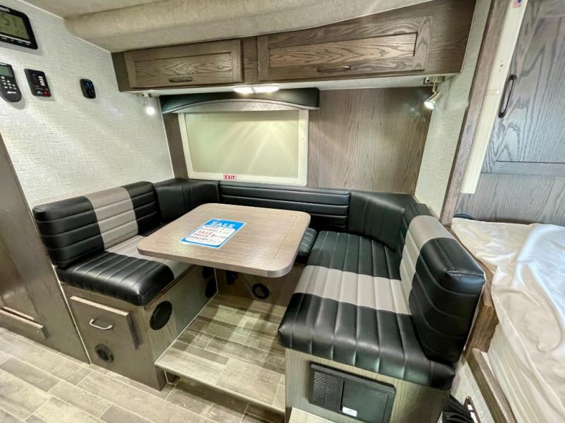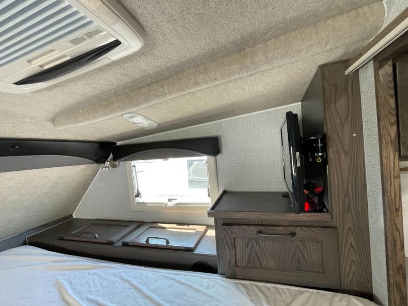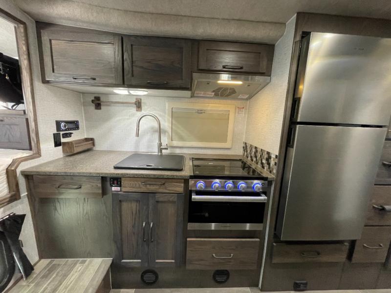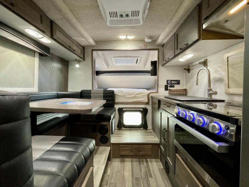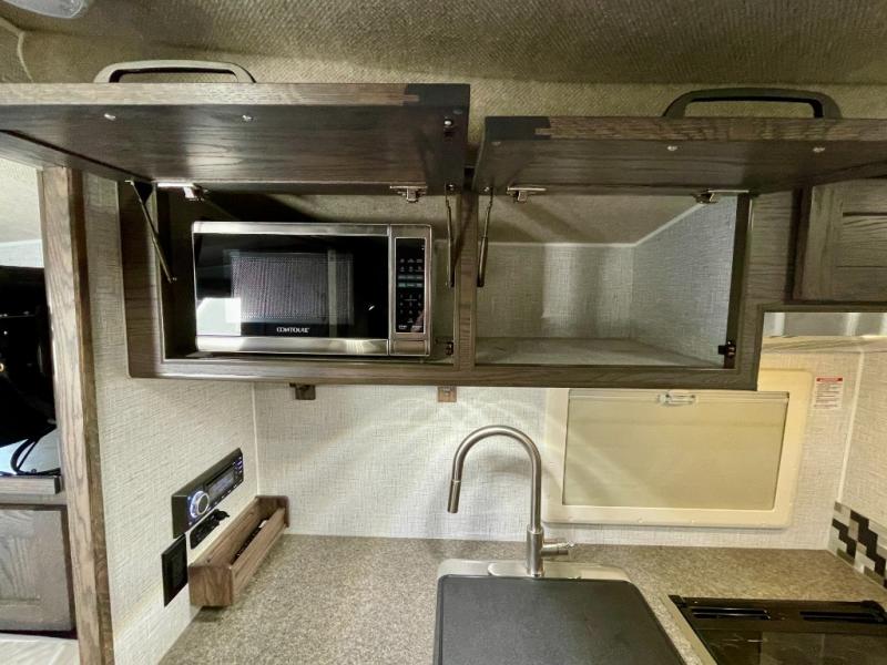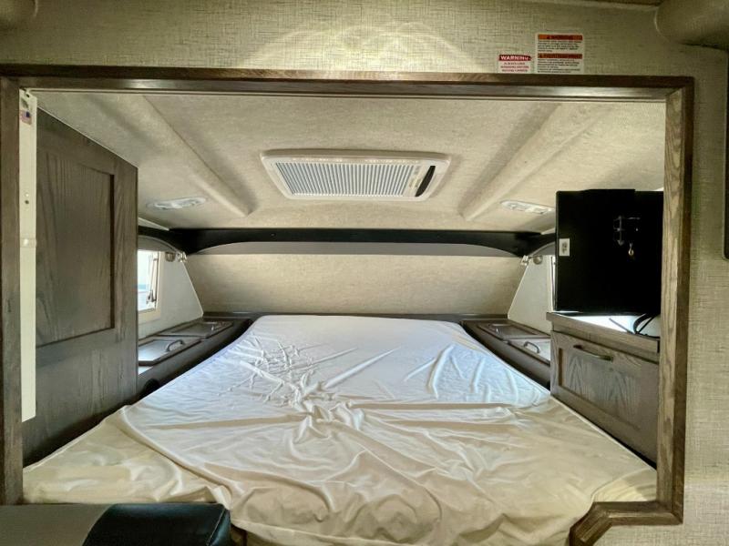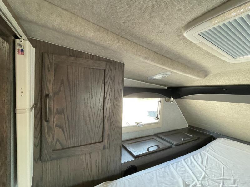Enjoy a home on top of your long bed truck with this truck camper! Start each morning feeling recharged after sleeping on the front queen bed while your electronics recharge at the 12V USB charging stations. Fill your bellies with fried bacon and eggs cooked on the three burner stove with oven and drink a cold glass of orange juice stored in the 6.3 cu. ft. three way refrigerator. Plus, you can eat your meals at the face-to-face dinette and transform into an extra sleeping space. You can even freshen up each morning in the dry bath with extra room, a divider that separates the shower from the toilet, and a built-in shower seat. There is plenty of storage throughout with closets and overhead cabinets too!