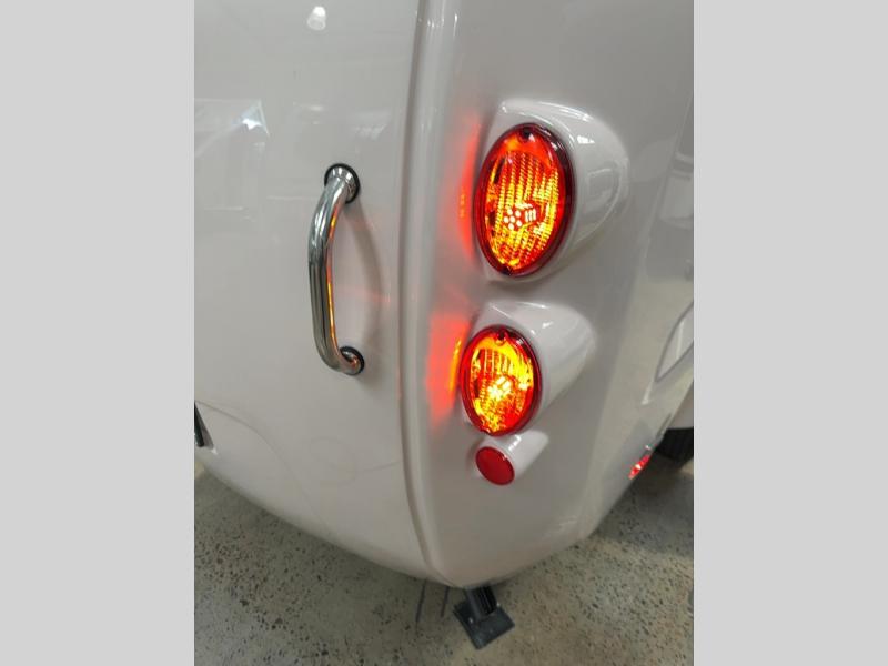 With any Barefoot travel trailer by nuCamp RV you will enjoy a high-gloss retro-styled fiberglass body, classic baby moon wheels, and a built-in Keder rail if you want to add an awning. There are external positioning handles outside, along with electric brakes, a solar port, and a 100 Ah 12V lithium battery to keep you going. You will love the interior with its push button cabinetry with high-performance surfaces, soft touch ceiling and ambient lighting, plus dinette cushions with accent piping and stitching. There is also an Alde central heat/hot water system and central A/C that will provide hot water when you need it and a refreshing place to relax during those hot summer camping months. Get your glamp on with the Barefoot travel trailer!