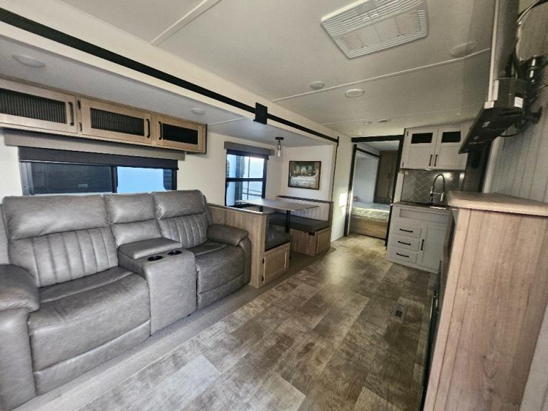 If you're looking for family-fun adventures then you need one of these Palomino Puma fifth wheels or travel trailers! They are built rugged, easy to tow, and jam packed with features. The Darco wrapped underbelly will protect your units vitals and the AlphaPly roofing membrane covers it. They also have new aluminum wheels and a powder coated steel I-beam frame. Inside, the Congoleum linoleum will be easy to keep clean, and the night roller shades will provide privacy when it's time to turn in. You'll also enjoy an electric awning with an LED light strip plus an AM/FM/Bluetooth stereo and two outside speakers to keep the party going!