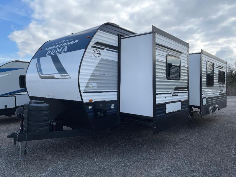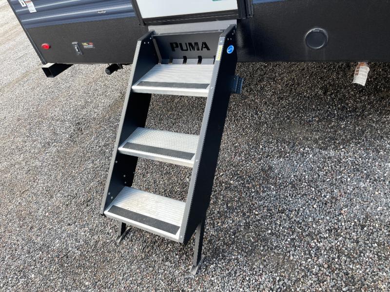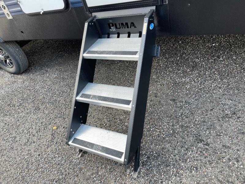 If you're looking for family-fun adventures then you need one of these Palomino Puma fifth wheels or travel trailers! They are built rugged, easy to tow, and jam packed with features. The Darco wrapped underbelly will protect your units vitals and the AlphaPly roofing membrane covers it. They also have new aluminum wheels and a powder coated steel I-beam frame. Inside, the Congoleum linoleum will be easy to keep clean, and the night roller shades will provide privacy when it's time to turn in. You'll also enjoy an electric awning with an LED light strip plus an AM/FM/Bluetooth stereo and two outside speakers to keep the party going!