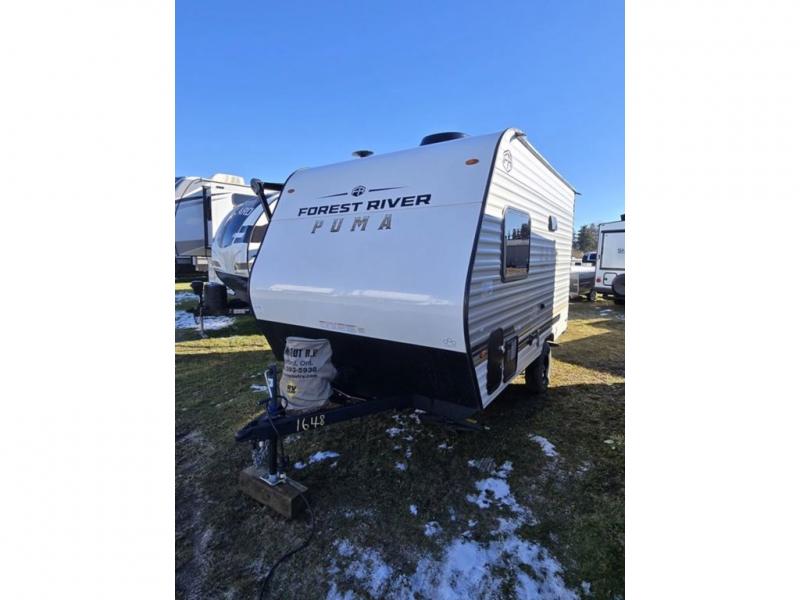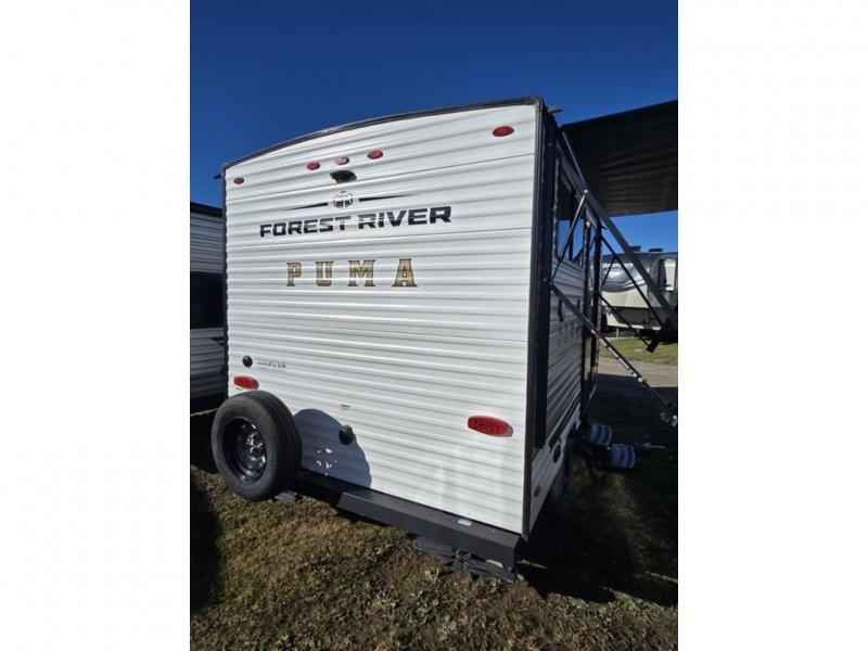 The Puma Camping Edition by Palomino offer an affordable travel trailer for rookie campers or seasoned RVers! They are built with 5/8" tongue and groove plywood flooring and a front diamond plate for added protection. There are also exterior clamp style door latches, back up camera prep, and 20 lb. LP bottles. Head inside to find Thermofoil countertops with a smooth drop edge, bedroom USB ports and outlets, and a GE appliance and kitchen package.
