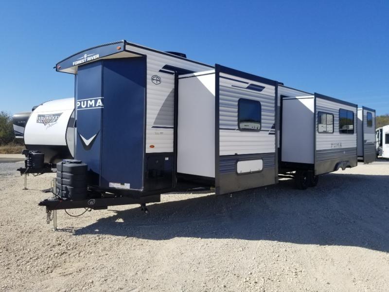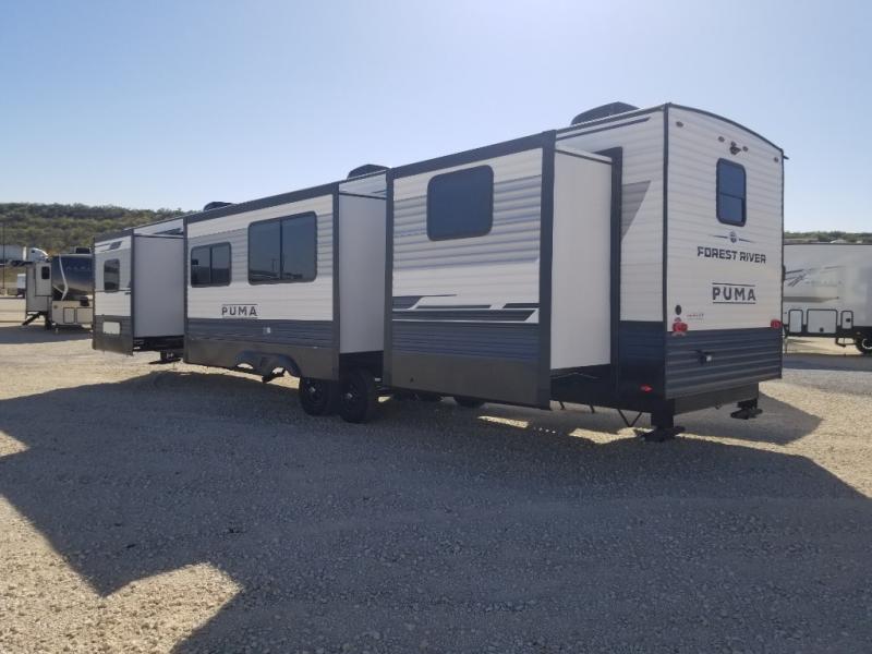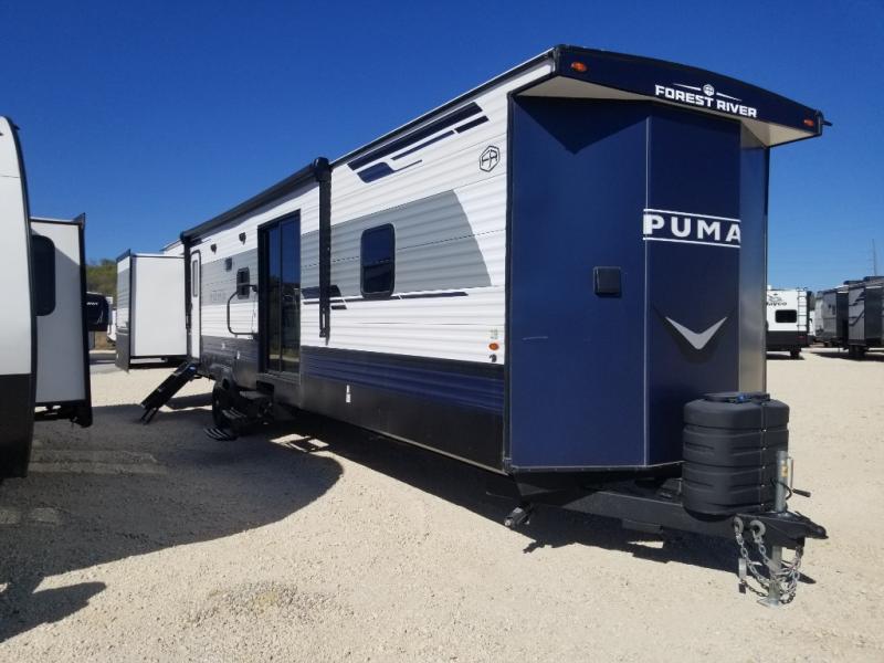 Each Puma Destination trailer by Palomino is designed to give you unforgettable getaways to the destination of your choice! The Value Shopper Package features Congoleum linoleum, LED lighting, an AM/FM/Bluetooth stereo, and an upgraded kitchen faucet to name a few comforts. Two exterior speakers are included with the required Marquis Edition, along with solid surface countertops, night roller shades, an outside shower, and four stabilizer jacks to help keep your unit secure. You will also appreciate the roof and side mount solar prep for off-grid capabilities, as well as WiFi prep if you need the option to work while you're away from home!