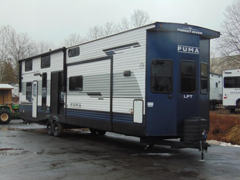 Each Puma Destination trailer by Palomino is designed to give you unforgettable getaways to the destination of your choice! The required Value Shopper Loft Package includes Congoleum designer linoleum, night roller shades, LED lighting, and a 24" stainless steel oven with a four burner stove so you can make meals just like you would at home. The tankless water heater is another feature you won't want to camp without, and there is WiFi prep, solar prep, plus optional washer and dryer prep for the option to further customize your trailer. An outside shower is included with the required Loft Package, along with two exterior speakers, solid surface countertops, four stabilizer jacks, and more!