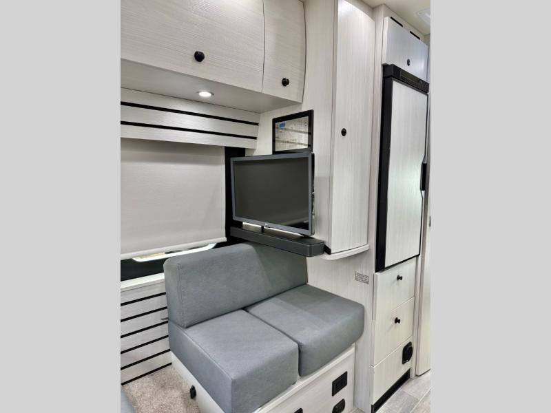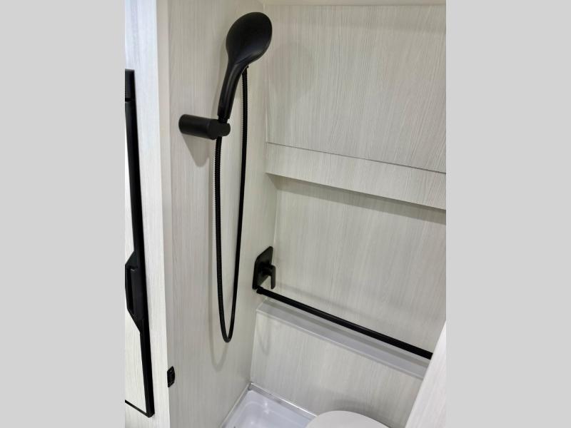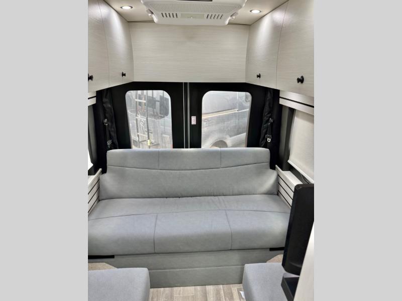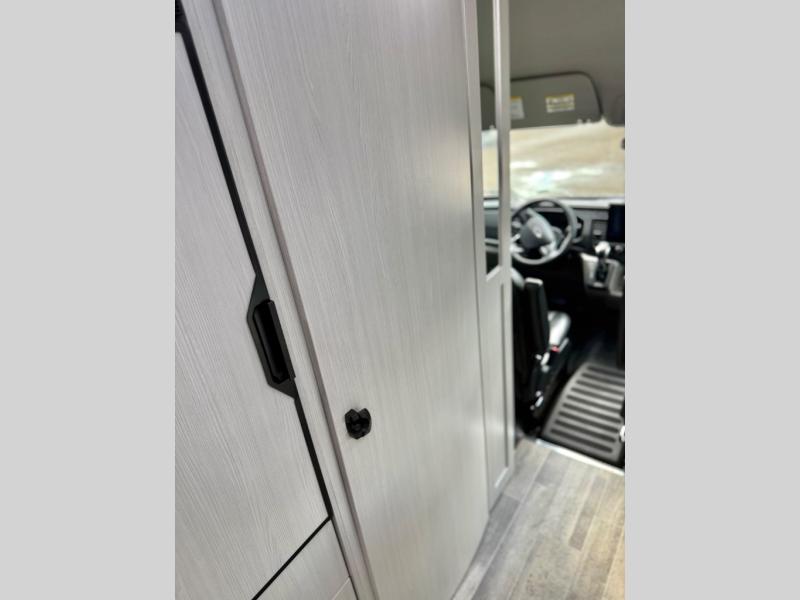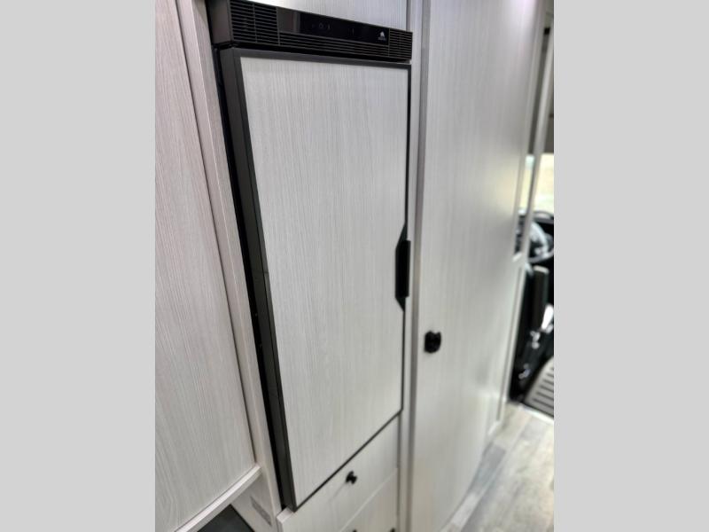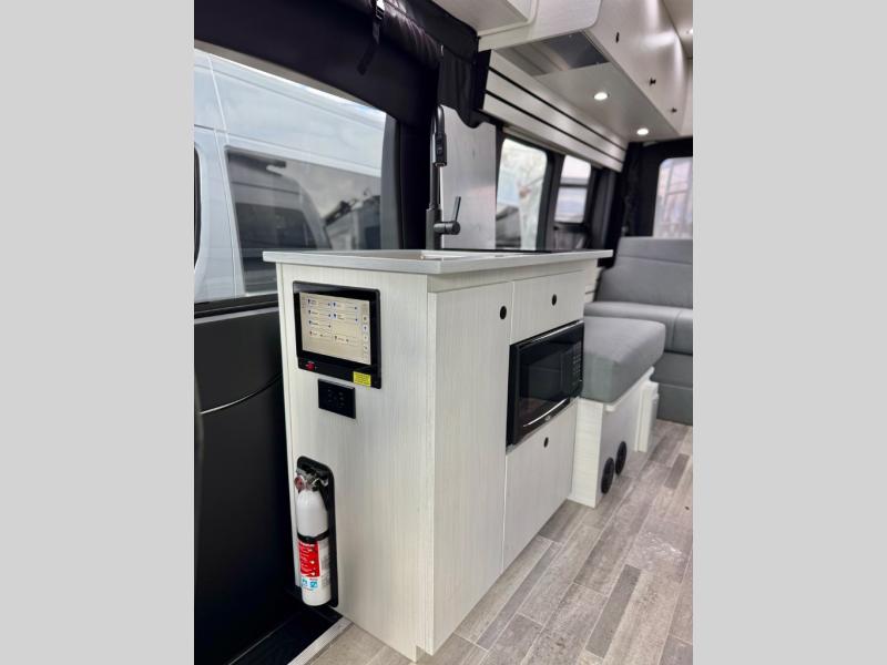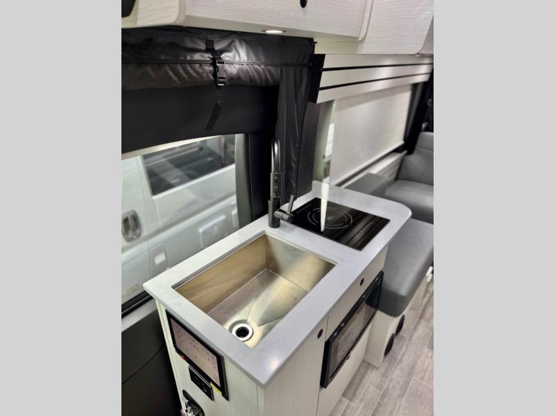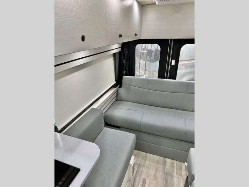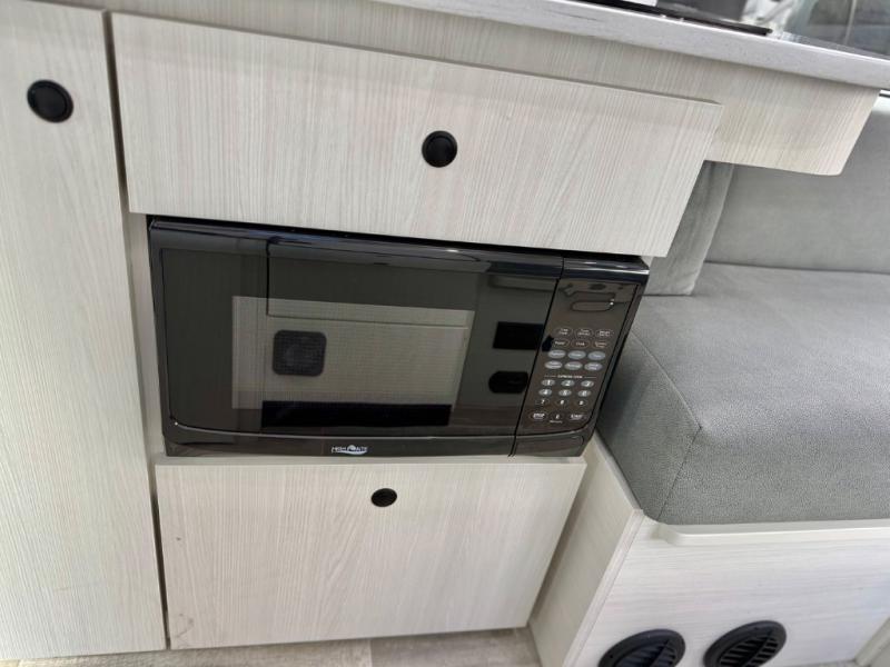 Plan to see the country in this Class B gas motorhome that includes everything you need while away from home. The power sofa with memory foam cushions will provide a great night's rest after traveling all day and the convenient wet bath with a handheld shower will allow you to clean up each morning. Prepare breakfast on the one burner induction stove top and you'll also find a microwave oven for quick meals. Food for the week can go in the 12V 3.2 cu.ft refrigerator/freezer and the overhead compartments can hold all the snacks. This model also includes a Lagun table mount system with 360 degree swivel top so you can enjoy coffee with your loved one.