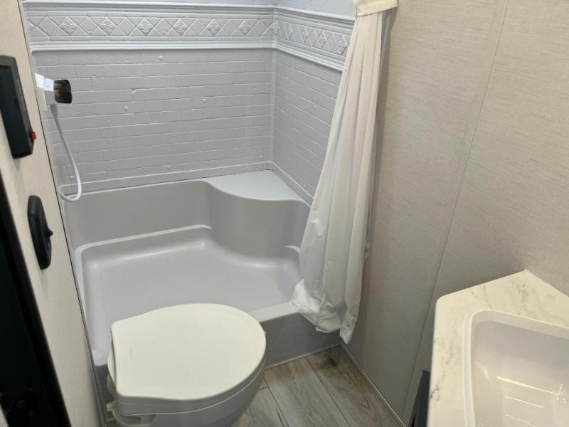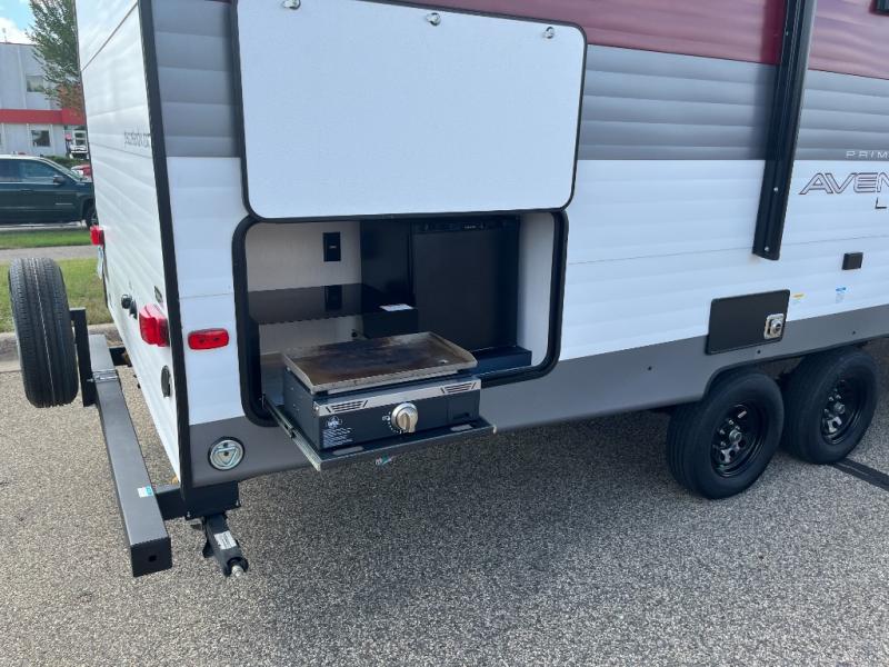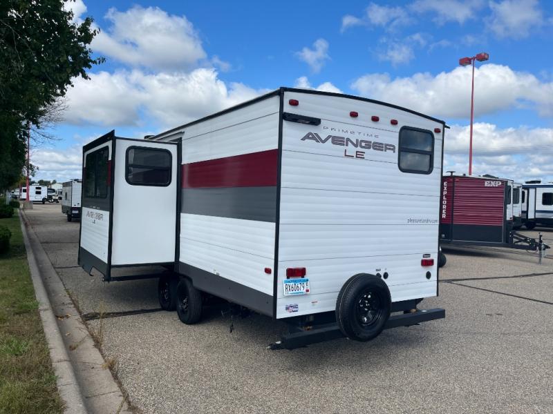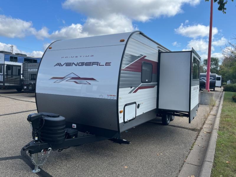 With any Avenger LE travel trailer by Prime Time RV you will enjoy at-home comforts while at the campground! Durable construction begins with an enclosed and heated underbelly, a one-piece roof membrane, and diamond plate front rock guard for added protection against debris during transport. There are also locking magnetic latches on the baggage doors, fully vented windows throughout, four stabilizer jacks, plus solar prep if you want the option to go off-grid. The interior will have you feeling right at home with residential extended ball bearing drawer glides, seamless Carefree Congoleum flooring, an XL single basin kitchen sink, and shower pans in all models that will make it easy to get in and out of the bath. Some of the convenient appliances and equipment you will appreciate are the 15,000 BTU A/C, 12V high-capacity water pump, Slim Profile range hood, and the Winegard 360+ antenna with Wi-Fi prep!