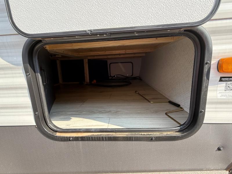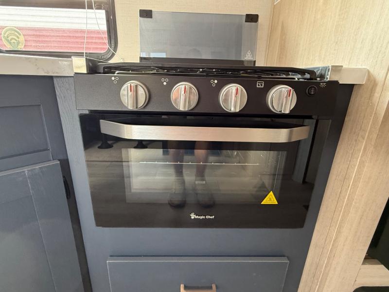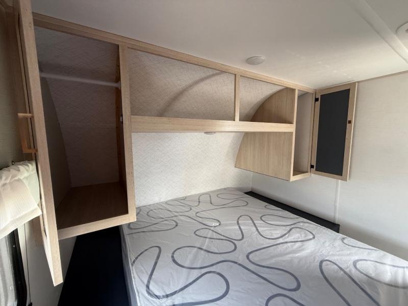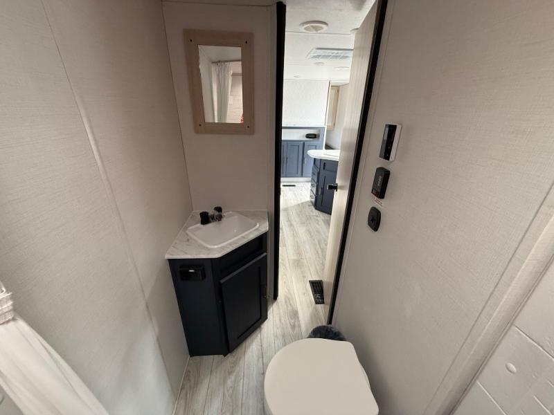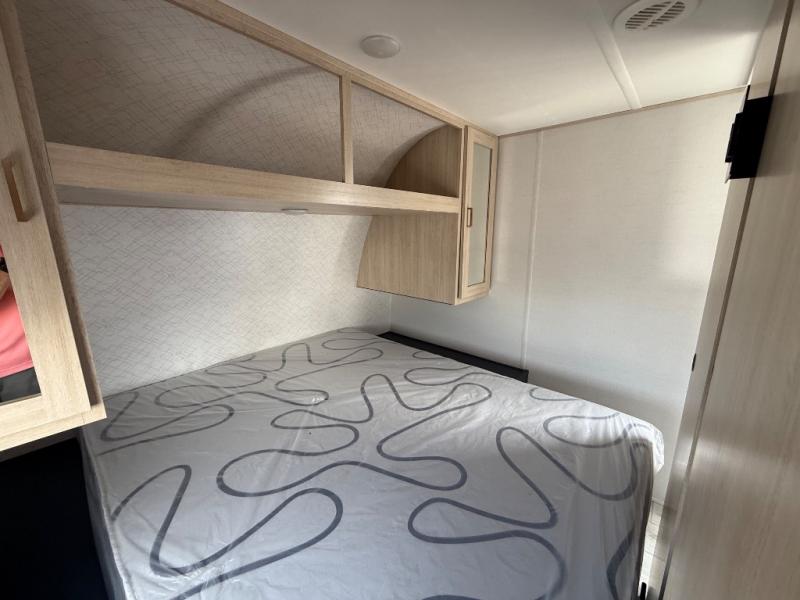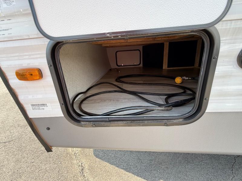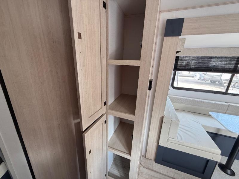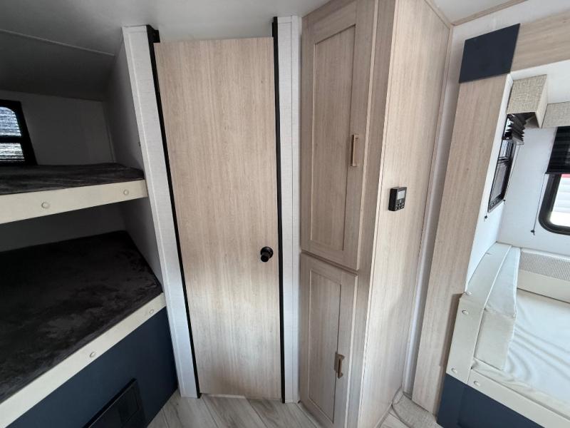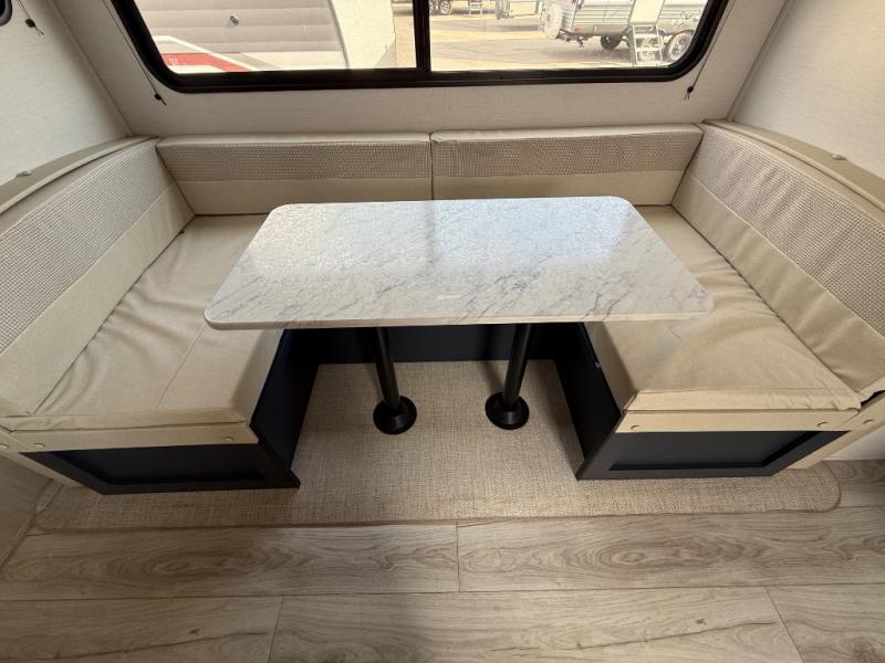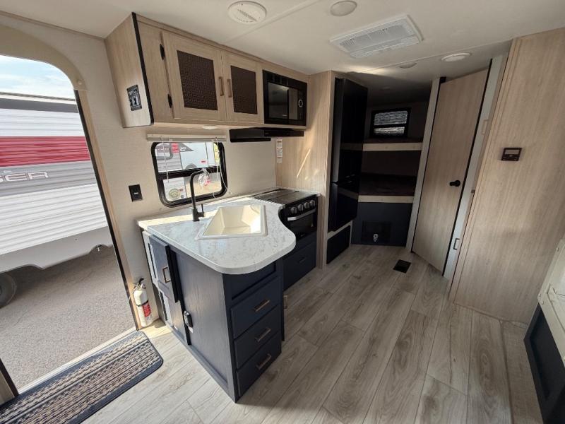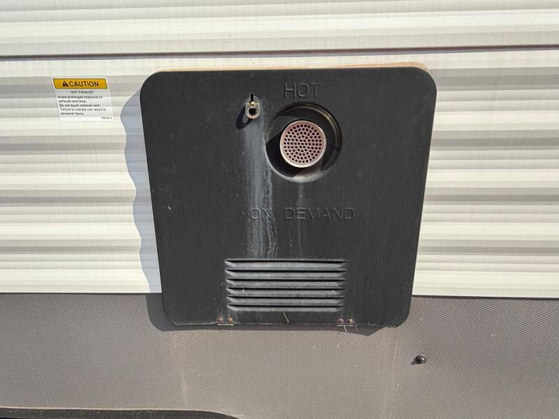 Gather the crew, load up and head out to enjoy a long-weekend at the state park! This trailer offers sleeping accommodations for eight because of the double-size bunks, the U-shaped dinette, and the queen bed. There is a rear corner full bathroom with a medicine cabinet to store personal belongings. You will find full kitchen amenities inside, as well as an outdoor kitchen where you can watch the kids play while making dinner. The single slide provides more living space in the interior, as well as extra sleeping space on the U-shaped dinette.