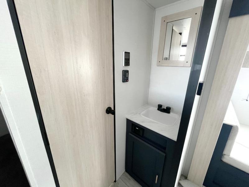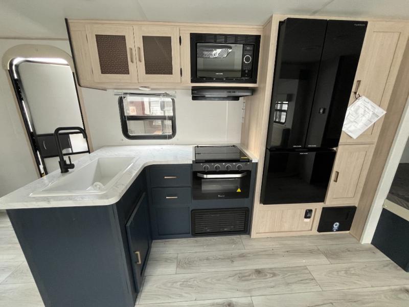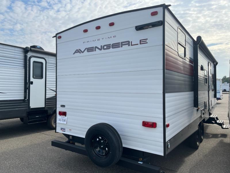 With any Avenger LE travel trailer by Prime Time RV you will enjoy at-home comforts while at the campground! Durable construction begins with an enclosed and heated underbelly, a one-piece roof membrane, and diamond plate front rock guard for added protection against debris during transport. There are also locking magnetic latches on the baggage doors, fully vented windows throughout, four stabilizer jacks, plus solar prep if you want the option to go off-grid. The interior will have you feeling right at home with residential extended ball bearing drawer glides, seamless Carefree Congoleum flooring, an XL single basin kitchen sink, and shower pans in all models that will make it easy to get in and out of the bath. Some of the convenient appliances and equipment you will appreciate are the 15,000 BTU A/C, 12V high-capacity water pump, Slim Profile range hood, and the Winegard 360+ antenna with Wi-Fi prep!
