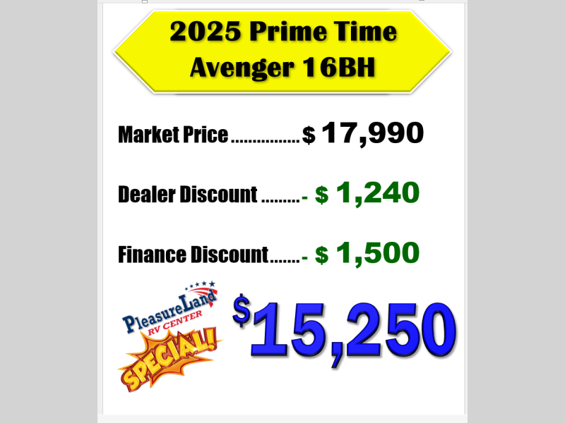Used 2025 Prime Time RV Avenger LT 16BH Travel Trailer