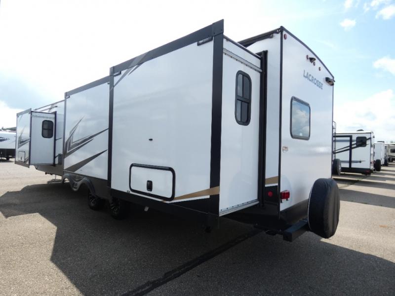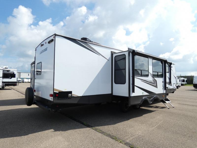 If you used to think that you had to spend a fortune to get a luxury RV, think again because the Prime Time LaCrosse travel trailer proves that you can combine luxury with value! The LaCrosse features premium vinyl flooring, solid surface countertops, an 82" interior ceiling height, motion-sensor LED lighting, and USB ports. On the exterior, the fully enclosed underbelly protects your unit so that you can adventure during colder weather, and the LED-lit electric awning is certainly a valuable feature that allows you to sit outside underneath some shade on a sunny afternoon. Come choose your model today!