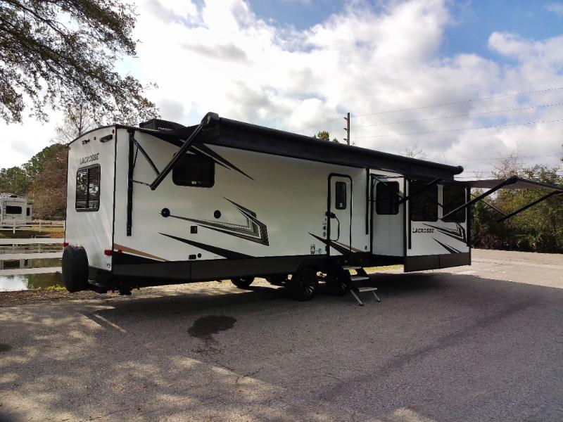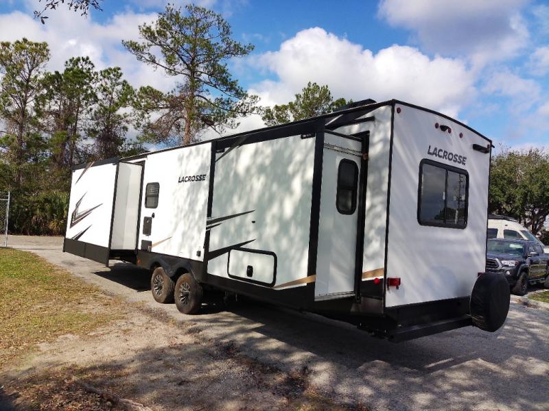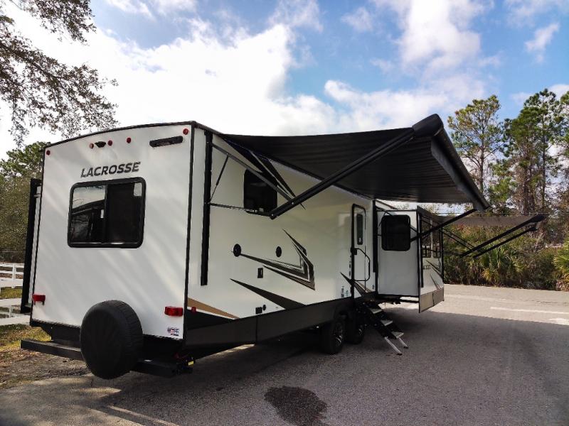 If you used to think that you had to spend a fortune to get a luxury RV, think again because the Prime Time LaCrosse travel trailer proves that you can combine luxury with value! The LaCrosse features premium vinyl flooring, solid surface countertops, an 82" interior ceiling height, motion-sensor LED lighting, and USB ports. On the exterior, the fully enclosed underbelly protects your unit so that you can adventure during colder weather, and the LED-lit electric awning is certainly a valuable feature that allows you to sit outside underneath some shade on a sunny afternoon. Come choose your model today!