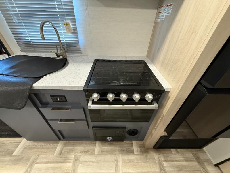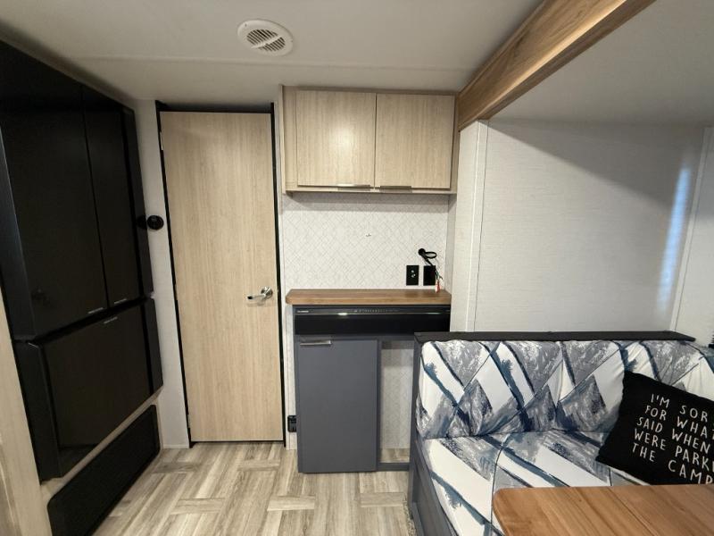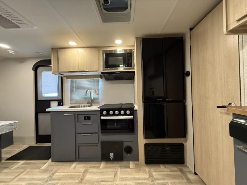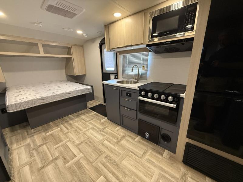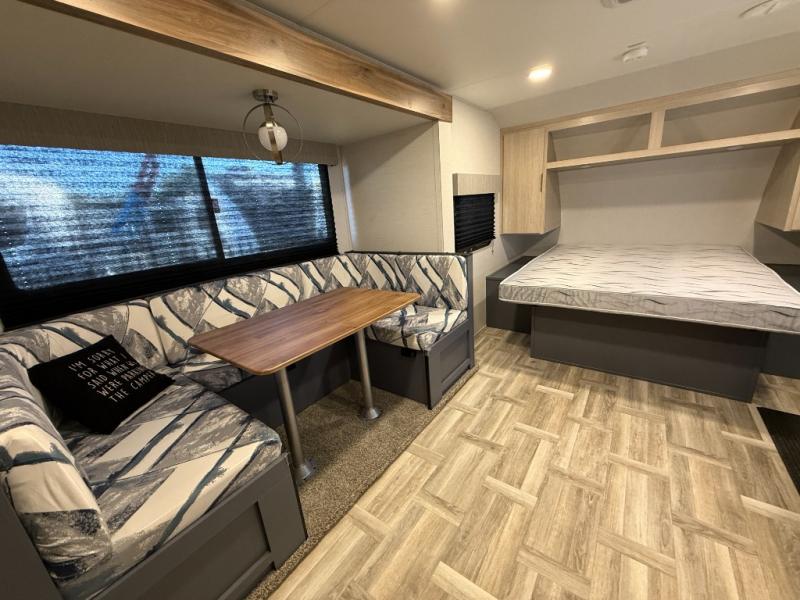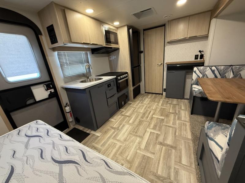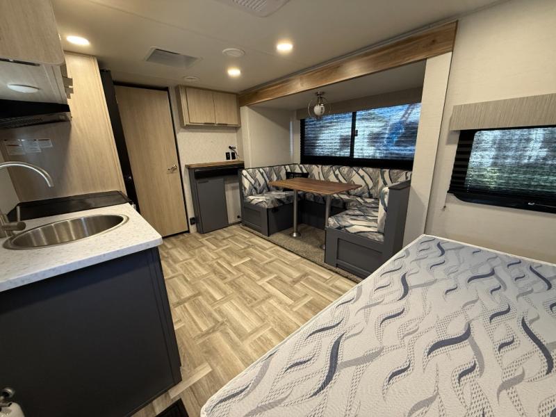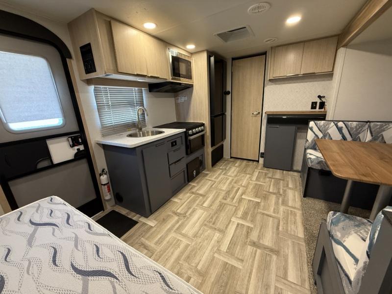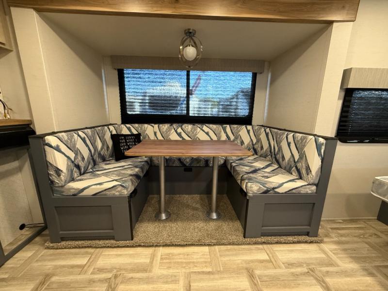 Looking to travel to see new campgrounds and enjoy the outdoors? This trailer offers you that choice then you can return to inside comforts with a queen bed and dual wardrobes and a U-shaped dinette slide out that allows you to provide more sleeping space. The galley kitchen offers a 2-in-1 gas oven and range, plus a large two-door 12V refrigerator and a microwave. The rear full bathroom might just be the reason you wanted this RV thanks to the privacy, the linen storage, and all the amenities that allow you to skip the public facilities.