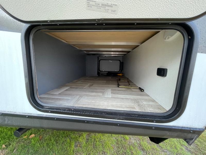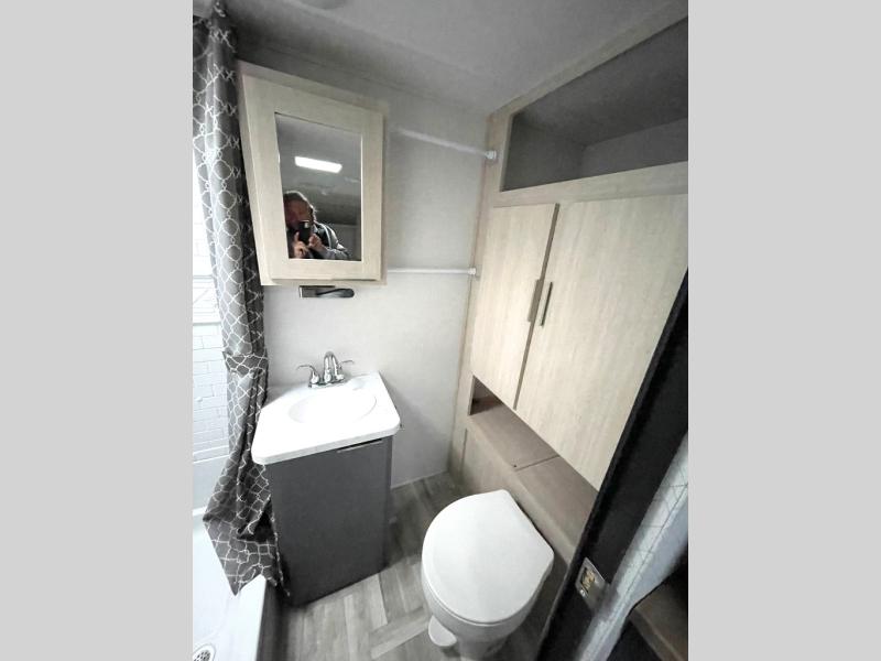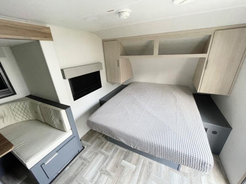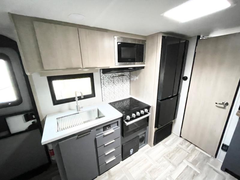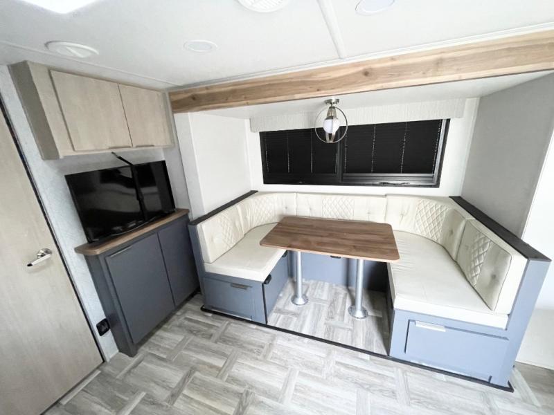 Looking to travel to see new campgrounds and enjoy the outdoors? This trailer offers you that choice then you can return to inside comforts with a queen bed and dual wardrobes and a U-shaped dinette slide out that allows you to provide more sleeping space. The galley kitchen offers a 2-in-1 gas oven and range, plus a large two-door 12V refrigerator and a microwave. The rear full bathroom might just be the reason you wanted this RV thanks to the privacy, the linen storage, and all the amenities that allow you to skip the public facilities.