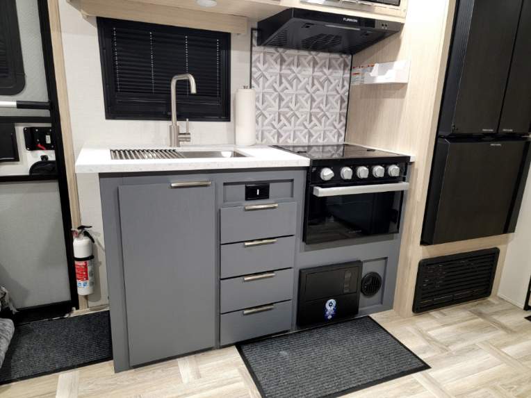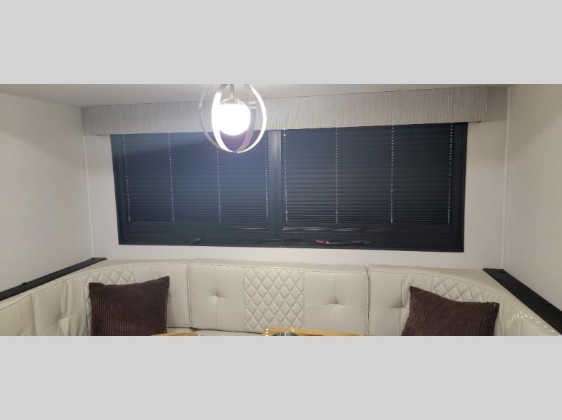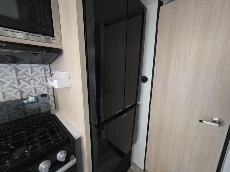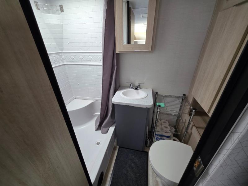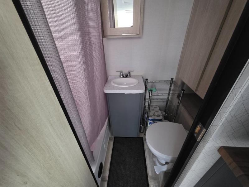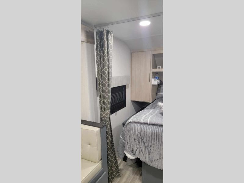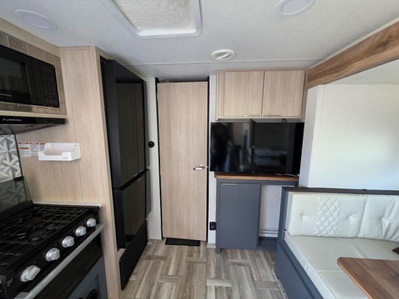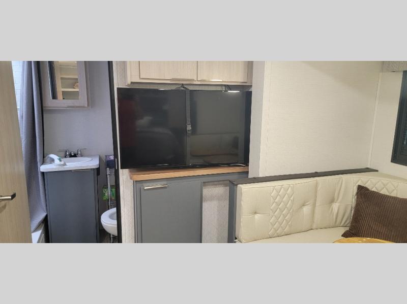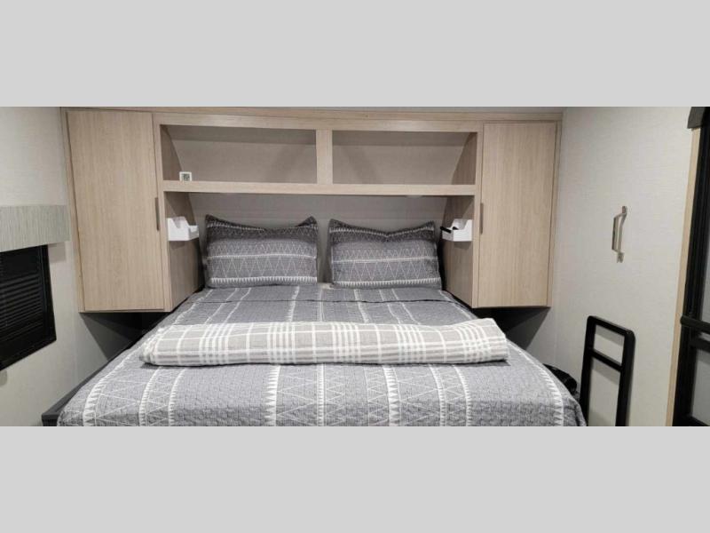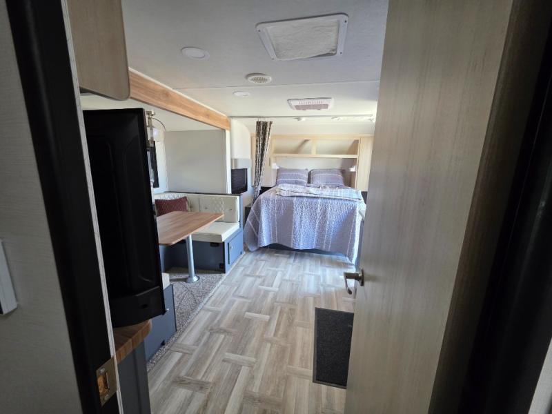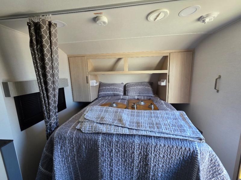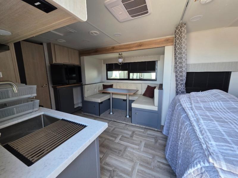Looking to travel to see new campgrounds and enjoy the outdoors? This trailer offers you that choice then you can return to inside comforts with a queen bed and dual wardrobes and a U-shaped dinette slide out that allows you to provide more sleeping space. The galley kitchen offers a 2-in-1 gas oven and range, plus a large two-door 12V refrigerator and a microwave. The rear full bathroom might just be the reason you wanted this RV thanks to the privacy, the linen storage, and all the amenities that allow you to skip the public facilities.