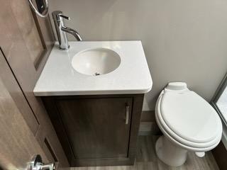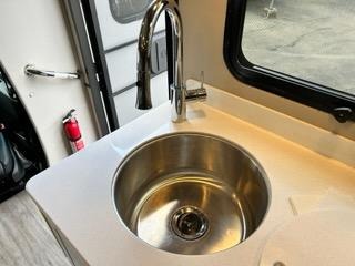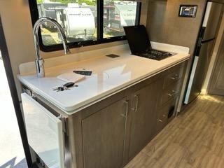 This is the perfect couples motorhome to explore the country! You will stay squeaky clean in the full rear bathroom with shower, and a large closet to store your clothes, towels, and other toiletries. Depending on what time you enter this coach will determine whether you see the sofa or the 65" x 72" Murphy bed. The kitchen has a two burner cooktop, a convection microwave, and an 8 cu. ft. refrigerator to prepare home cooked meals, and a booth dinette to enjoy them at. The 46" x 80" bunk mattress over the cab lets another member join in on the adventure and the booth dinette offers sleeping space as well.
