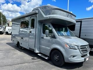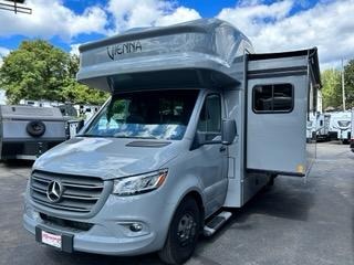Luxury is in the details of each one of these Renegade Vienna Class C diesel motorhomes! They are built on a Mercedes-Benz Sprinter chassis, and include a four point hydraulic leveling system with app control, a 2000w true sine wave hybrid inverter, a 3.6KW LP generator with auto gen start, and Winegard Connect 2.0. You will appreciate the Truma™ Comfort Plus tankless water heater when showering, the accent lighting at the galley countertop for style, and the USB charging in the living area, bedroom and kitchen to keep your electronics ready. The Maple hardwood cabinetry completes the luxurious décor throughout the inside. Make your selection today!