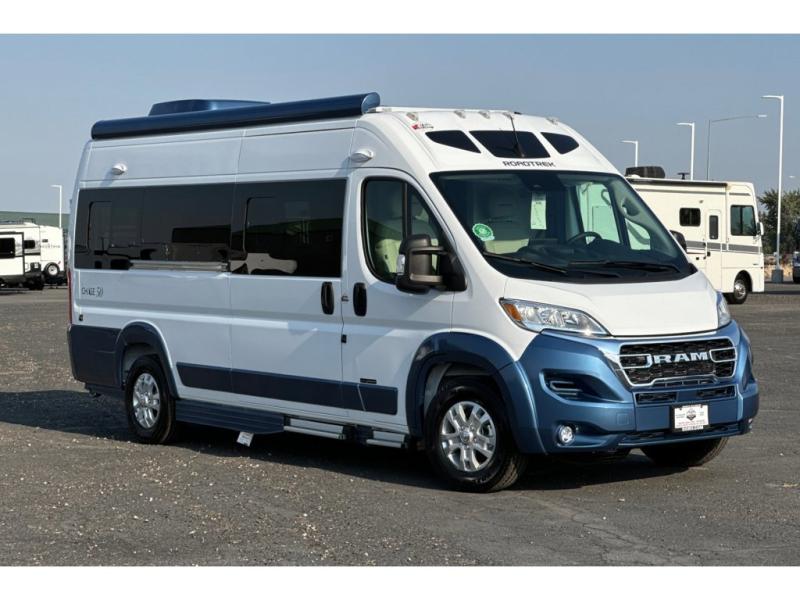 The Roadtrek Class B gas motorhomes are built upon the stylish Ram ProMaster 3500 chassis with a 3.6L V6 gas engine to power your trips near and far. The Uconnect 5 HD radio with Apple Car Play and Android Auto will make the drive just as sweet as the destination. Each model includes a 12V refrigerator, a two-burner recessed propane stove with a flush cover and built-in igniter, and ample storage space for all your belongings. There are even solar panels to go off the grid, an outdoor shower to rinse the dirt off your feet before entering inside, and a retractable awning to protect you rain or shine. Come find your favorite one today!