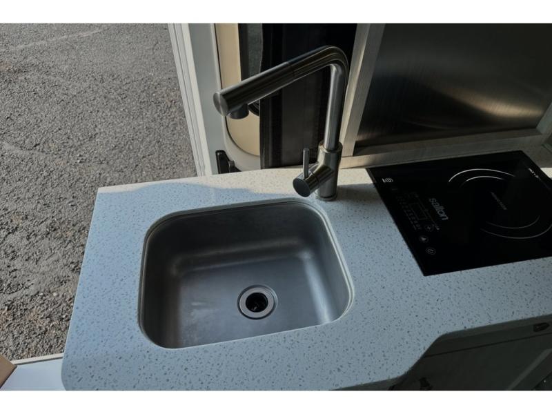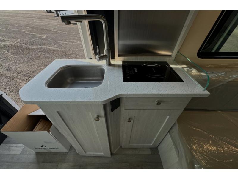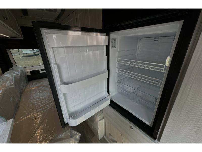 Chase your outdoor excursions in this comfortable motorhome for two! You will find side-facing rear power sofas that can convert to twin beds or a king-size bed for your comfort. If you're needing more sleeping space, just add the optional folding mattress for the front captain's seats! You can prepare at-home meals in the galley that features a two-burner propane stove, a 5.3-cu. ft. refrigerator, plus a counter extension with a charging station for your tablet or phone. After you've freshened up in the convenient wet bath, head outdoors for the day to enjoy the sunshine. When you return, you can make popcorn in the microwave oven and watch a movie on the 24" Smart TV!