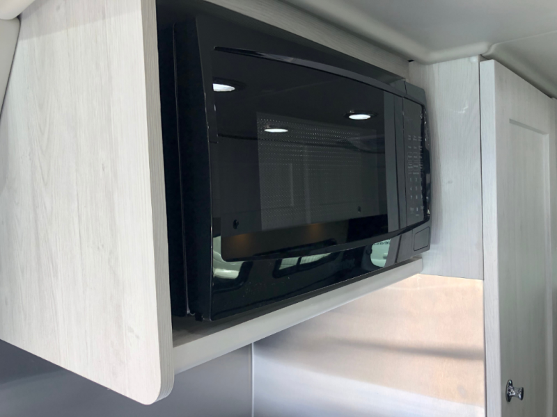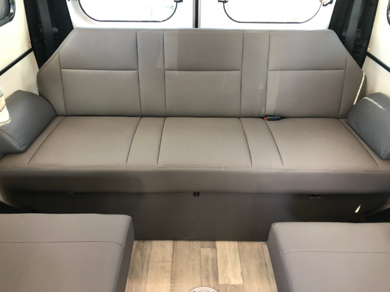 Whether you need more space for your bicycles, gear, or luggage, you will love the open-concept layout of the Zion coach. Each morning you can prepare breakfast on the two-burner propane stove, or use the convenient microwave oven. Head out to find a trail or two, and the wet bath will be waiting for you when you return. The countertop extension with a charging station will provide a place to download your pictures from your hike, and there is a slide-out pantry to grab a snack to hold you over until dinner. The side-facing rear power sofas easily convert to twin beds or a king-size bed for your comfort.