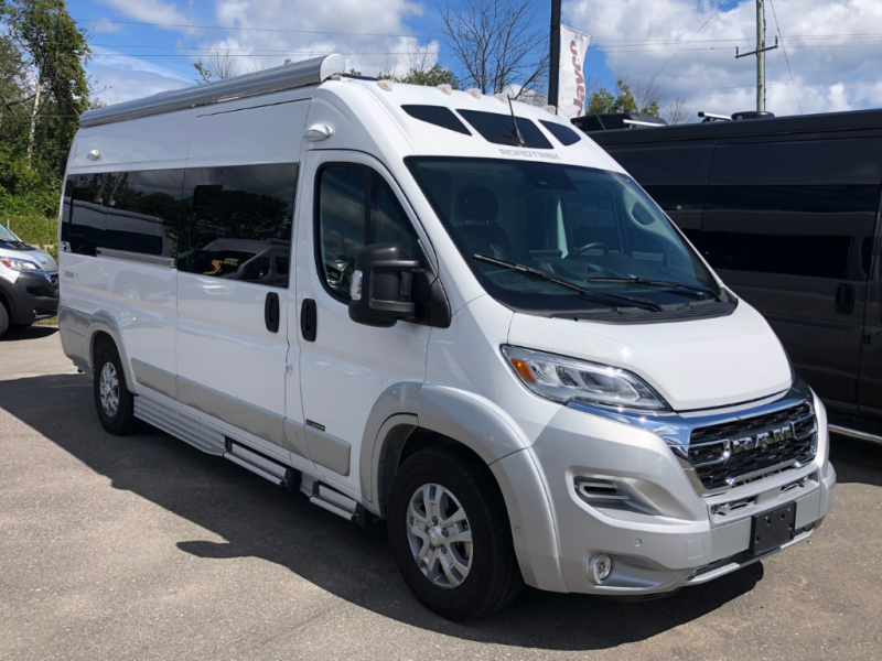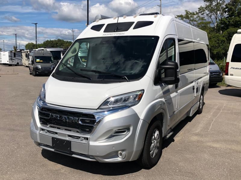 The Roadtrek Class B gas motorhomes are built upon the stylish Ram ProMaster 3500 chassis with a 3.6L V6 gas engine to power your trips near and far. The Uconnect 5 HD radio with Apple Car Play and Android Auto will make the drive just as sweet as the destination. Each model includes a 12V refrigerator, a two-burner recessed propane stove with a flush cover and built-in igniter, and ample storage space for all your belongings. There are even solar panels to go off the grid, an outdoor shower to rinse the dirt off your feet before entering inside, and a retractable awning to protect you rain or shine. Come find your favorite one today!