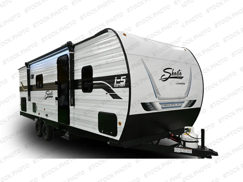 In any Shasta i-5 Edition travel trailer, you will find quality craftsmanship along with an affordable price tag. These units each feature four stabilizer jacks to make setting up easier and an enclosed underbelly for added protection as you travel. The Base Camp Package provides each unit with black tank flush, a monitor panel for quick access to the functions of your unit, a 13.5K A/C unit, and a tankless water heater for added convenience. Inside, you'll find seamless countertops, sink covers, a portable Bluetooth speaker, and more comforts!