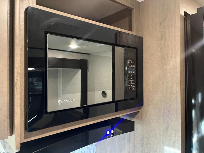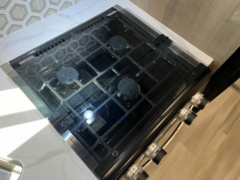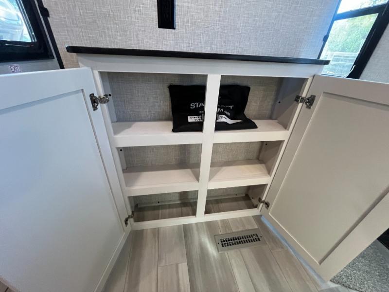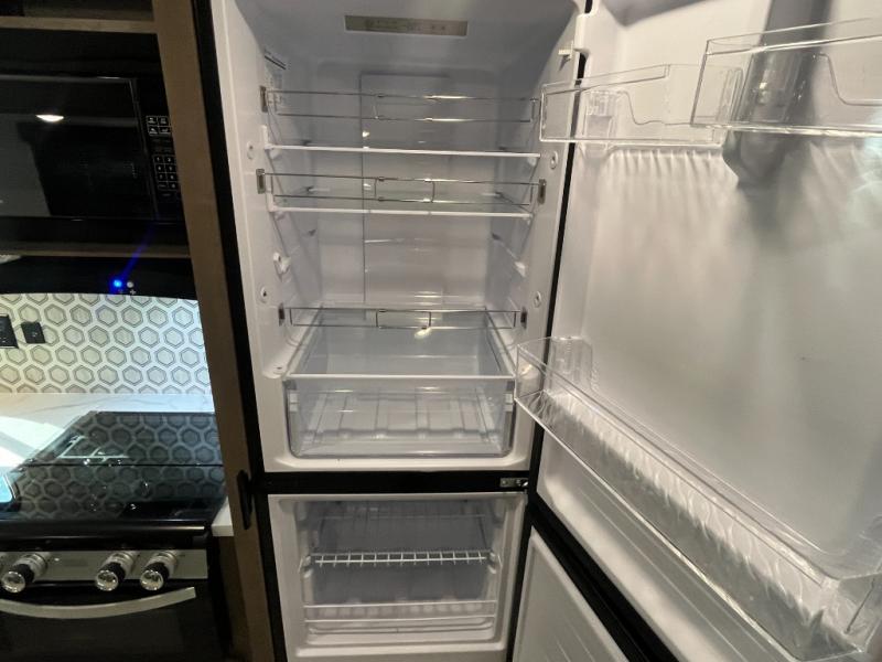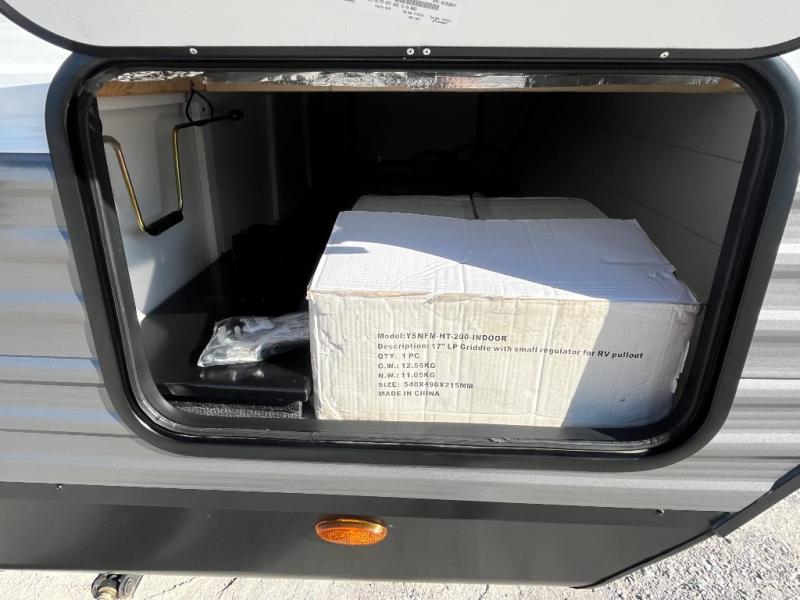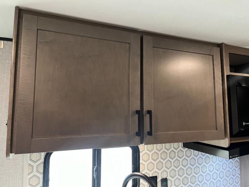 Enjoy camping at local RV spots or even national parks in this dual axle trailer that offers a large slide with a jackknife sofa and booth dinette for more sleeping space and interior room to relax. There is a full bathroom to get cleaned up in with extra counter space for toiletries, and the kitchen provides a three burner range with glass cover, a 17" oven and a pantry to hold all the goodies. You can enter the front bedroom from each side of the entertainment center giving you your own side, and there are dual wardrobes plus a shelf overhead. And don't forget about the 16' power awning with LED lighting, the exterior storage for your outdoor gear and the outside kitchen. You might even like to add a few options, take a look at the list!