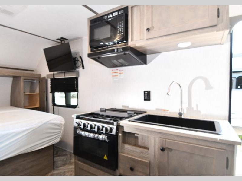 Lightweight, stylish, and designed for easy getaways — the pre-owned 2025 Sunset Park RV Sun Lite LTD 19RB is the perfect couple’s travel trailer. Weighing under 3,000 lbs, it tows effortlessly behind many SUVs and half-ton trucks, giving you the freedom to explore without limits. Inside, you’ll find a front RV queen bed with dual closets, a cozy 30” booth dinette for meals or lounging, and a full rear bathroom with a standard shower and power vent for comfort on the road.