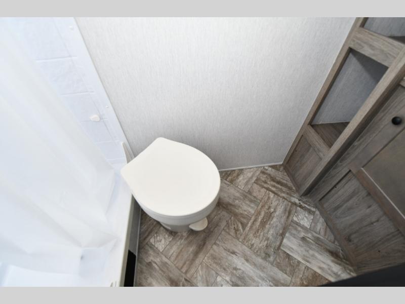 Full rear bathroom with shower and power vent