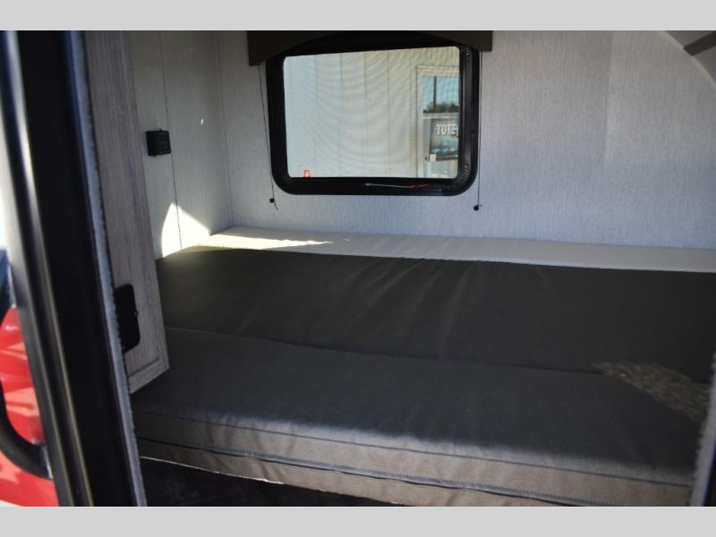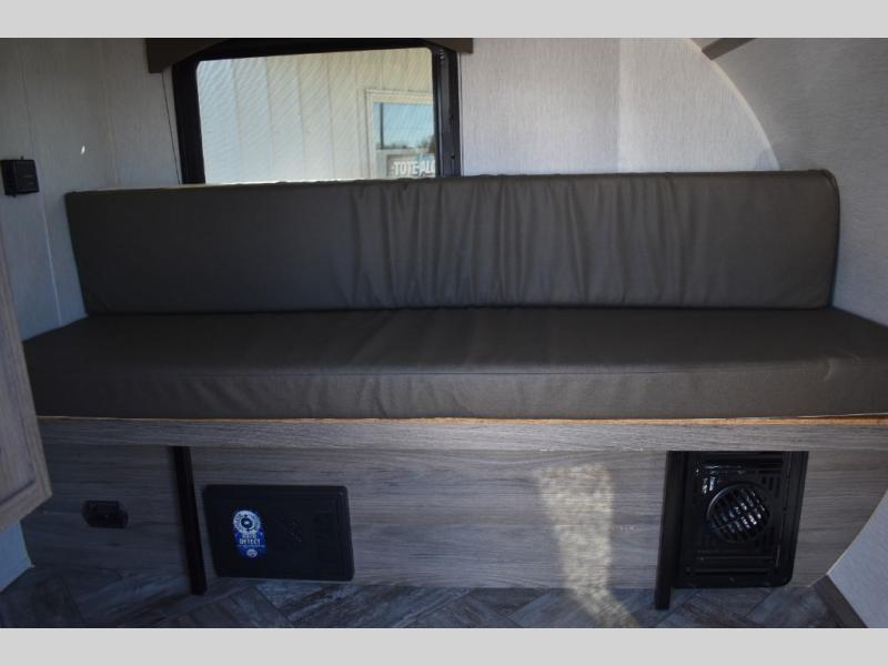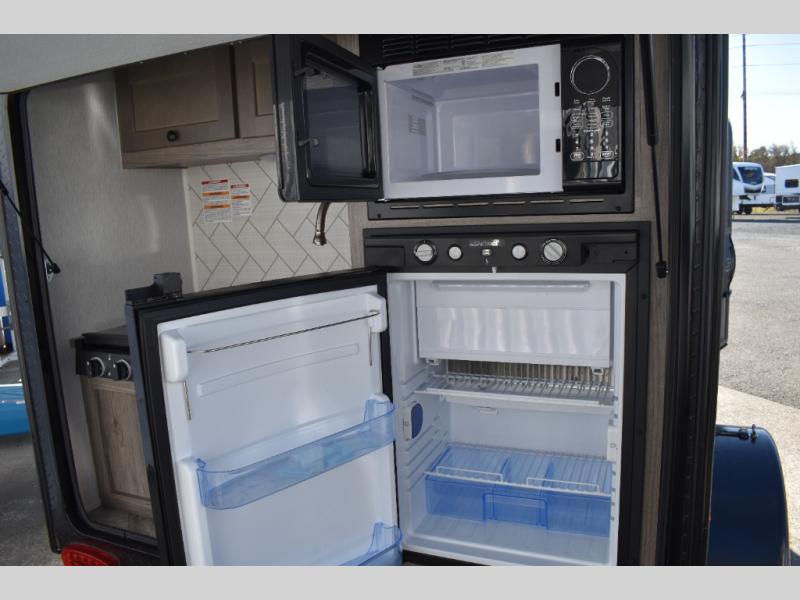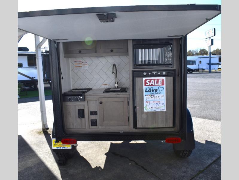 This Sunray travel trailer with its 12' length and 1,320-LB dry weight, is simple to navigate. You have most of the basic essentials without needing to tow all of the extra weight. There is an outdoor kitchen that comes with a two-burner stove top, a refrigerator, and a microwave so that you can cook dinner without having to start a fire. You will have an outside shower that you can use for various purposes, like rinsing off your equipment, filling a bucket with water, or hosing down your muddy puppy, and there are USB ports and a Winegard HDTV antenna to keep you modern.