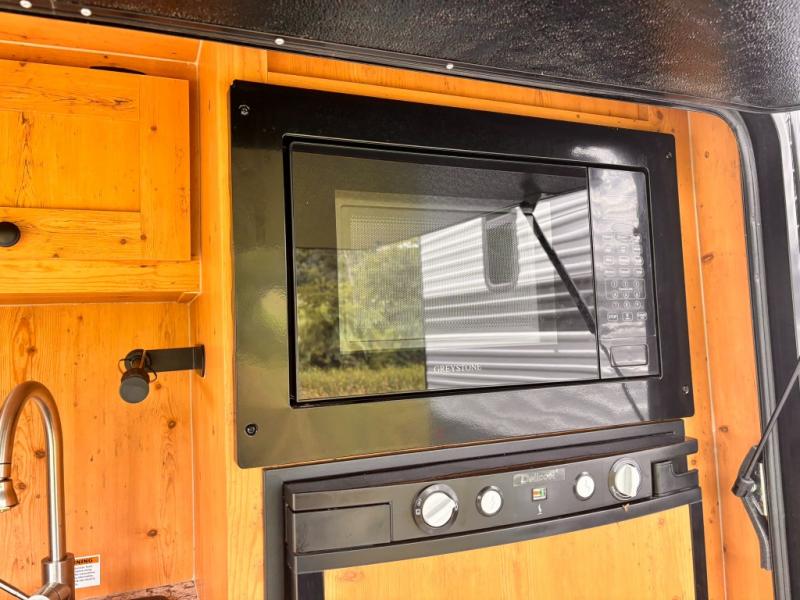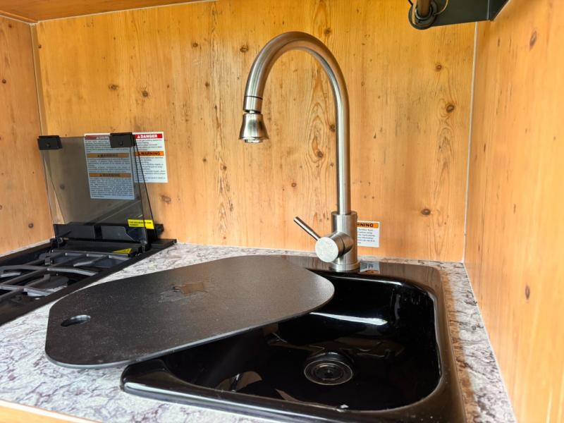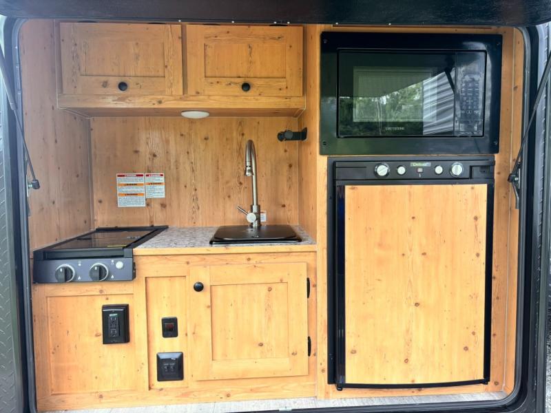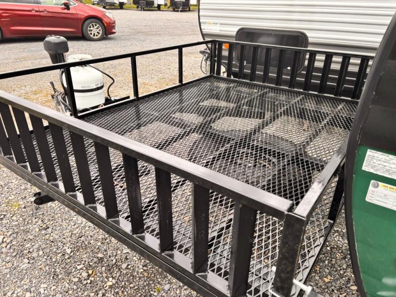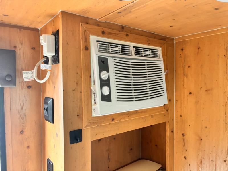 This Sunray travel trailer is set up just like its original counterpart, model 109, but this model comes with an extra advantage: a front ATV rack! You can use this rack to transport your ATVs without having to tow an additional trailer. There is an outdoor kitchen that comes with a two-burner stove top, a refrigerator, and a microwave so that you can cook dinner without having to start a fire. You will have an outside shower that you can use for various purposes, like rinsing off your equipment, filling a bucket with water, or hosing down your muddy puppy, and there are USB ports and a Winegard HDTV antenna to keep you modern.