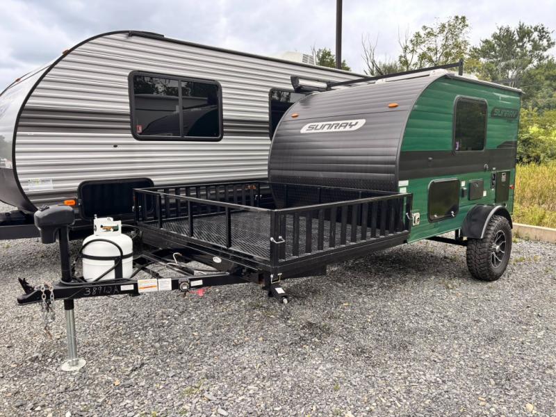 The Sunray travel trailer from Sunset Park RV is an investment that you'll be able to enjoy for many years to come! These compact trailers are effortless to tow, so you won't need fancy equipment to have fun at the campsite. The Sunray is built upon a powder-coated steel chassis, and it has a diamond plate rock guard to keep the front end protected from debris. You'll find radial tires, a spare tire with carrier where available, and .024" aluminum siding on each model. You'll be able to remain comfortable when staying indoors thanks to the A/C and furnace. Another way that your camping experience will be elevated is with the Confidence Package which comes with a 6” lift with off-road tires, black steel rims, a roof rack, and more!