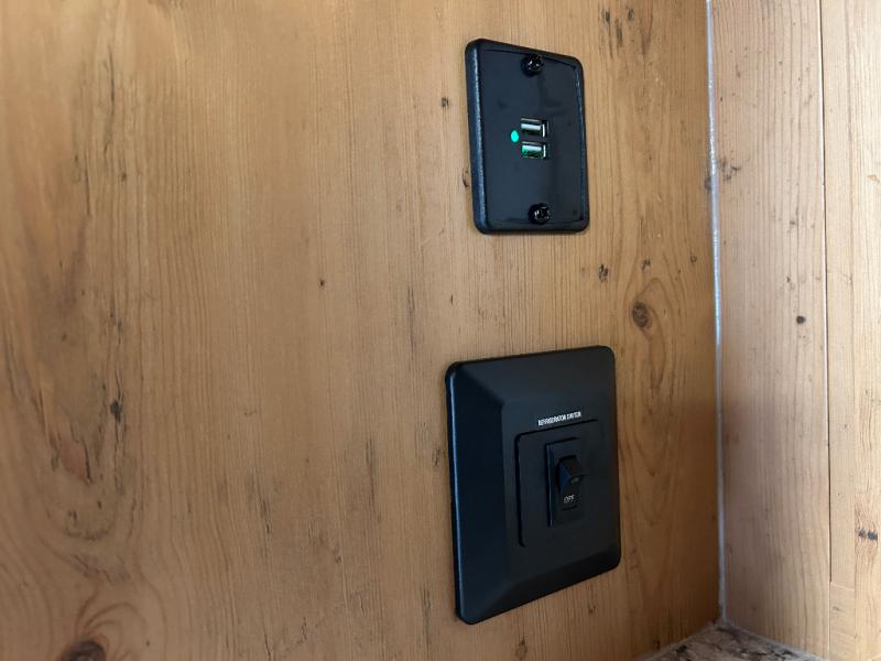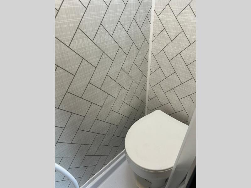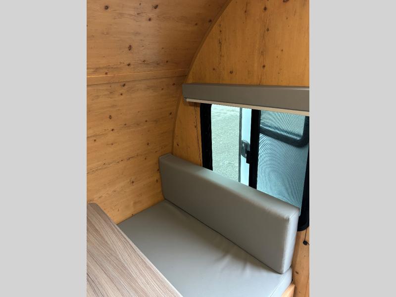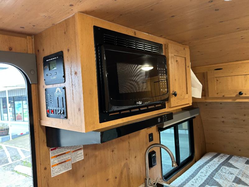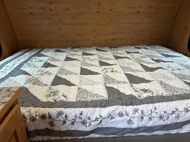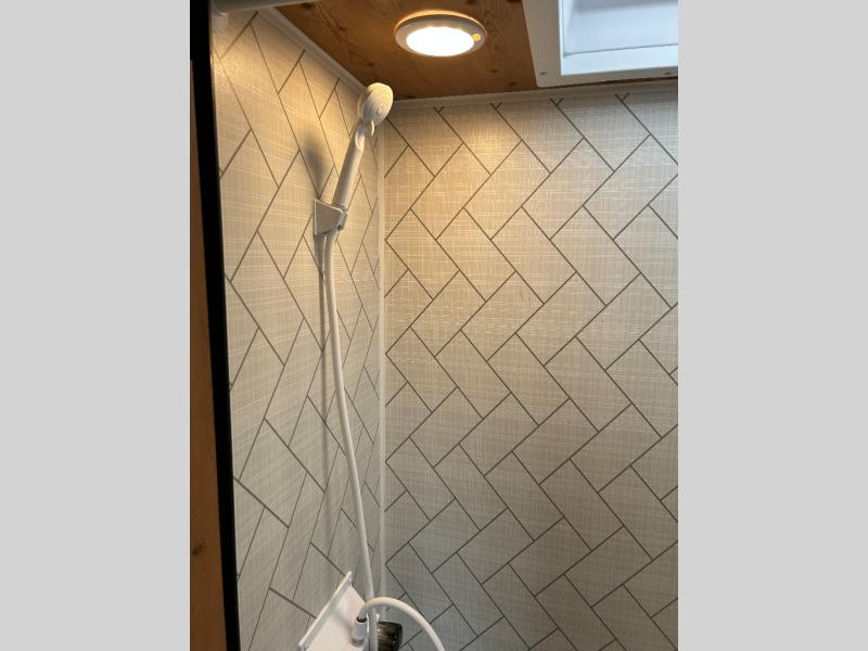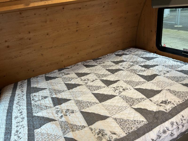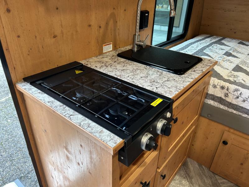 This Sunray travel trailer is the largest and most accommodating because it comes with a wet bath so that you can even take a shower in your trailer! There is a small kitchen on the interior that comes with a two-burner stove top, a refrigerator, and a microwave so that you can cook dinner without having to start a fire, and since it is indoors, you will be able to keep the bugs away while you prepare something delicious to eat. If you need to rinse off some gear, the outside shower will be especially useful, and if you need to charge your devices, use the USB ports. You will also find a Winegard HDTV antenna on this model. Add the available Classic option for 14" tires instead of the off-road version, color matching rims with Moon Caps, and Retro decor and Diner-Style countertops.