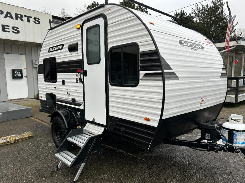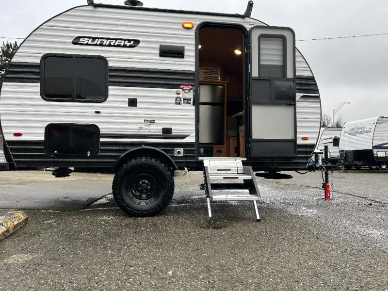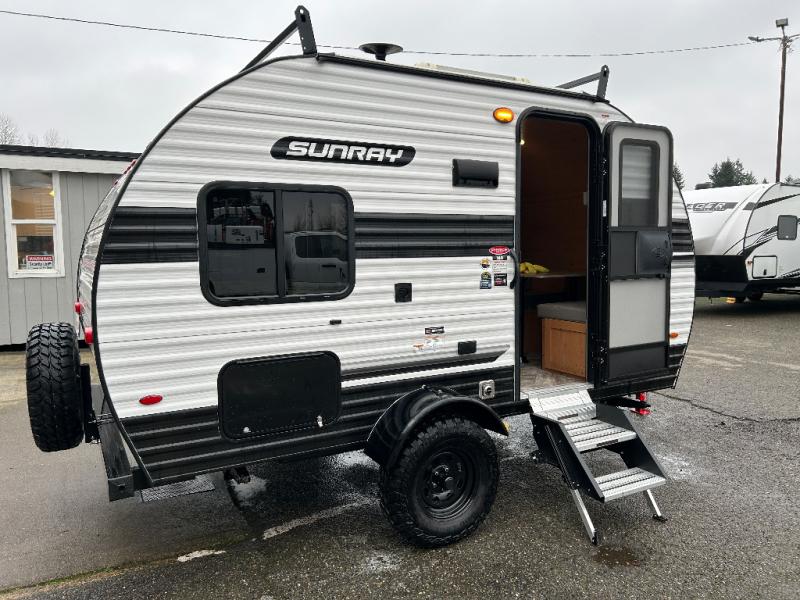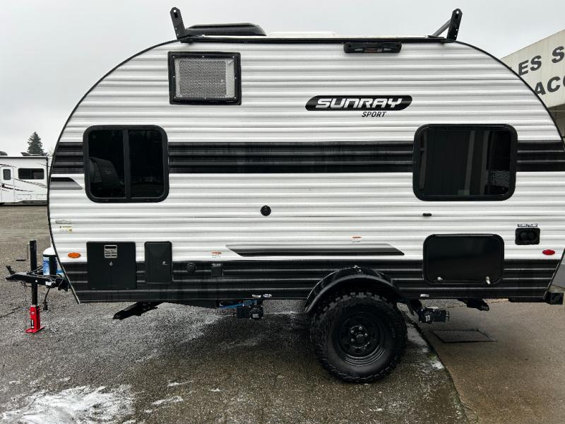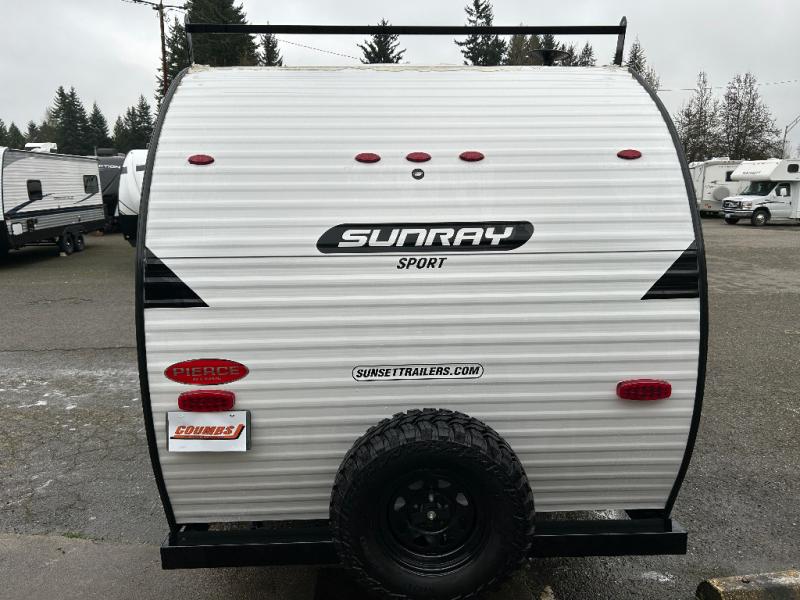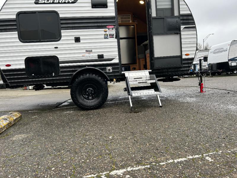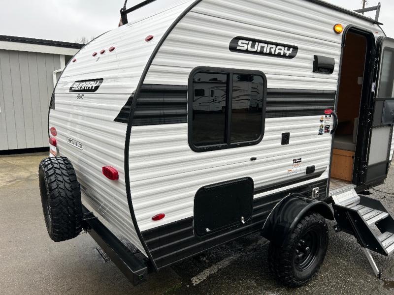 The Sunray travel trailer from Sunset Park RV is an investment that you'll be able to enjoy for many years to come! These compact trailers are effortless to tow, so you won't need fancy equipment to have fun at the campsite. The Sunray is built upon a powder-coated steel chassis, and it has a diamond plate rock guard to keep the front end protected from debris. You'll find radial tires, a spare tire with carrier, and .024" aluminum siding on each model. You'll be able to remain comfortable when staying indoors thanks to the A/C and furnace. Another way that your camping experience will be elevated is with the Confidence Package which comes with a 6” lift with off-road tires, black steel rims, a roof rack, and more! And this trailer has All of That! This little trailer is Begging to go on an Adventure! Comes with a New Weight Distribution Hitch with Sway Control and a Virtually Indestructible Coupler Lock.