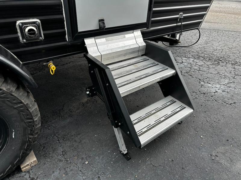 This model is also adventure-ready with features designed for modern camping, including a roof-mounted solar panel, off-road tires, roof rack, and durable construction. These features make it ideal for campers who enjoy exploring off the beaten path while still having access to essential conveniences.