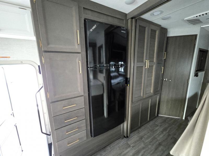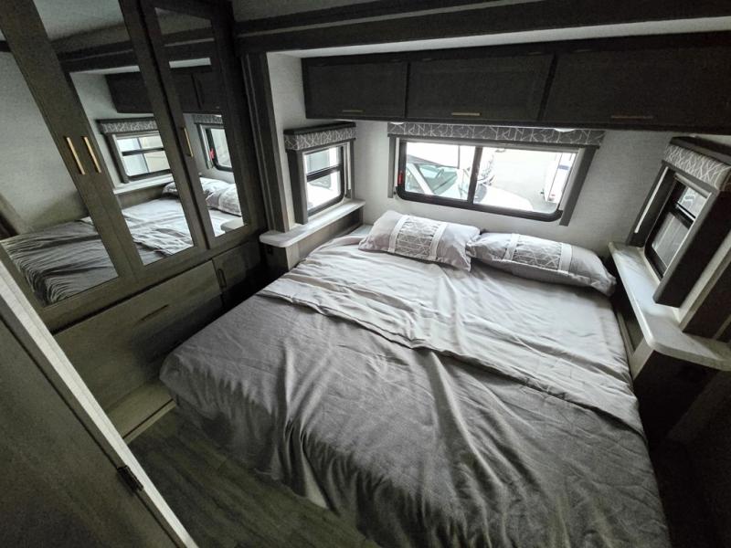 Your family will love traveling in this spacious coach that can sleep six. The little ones will love the drop-down overhead bunk, and you'll have a bedroom with a king bed slide out, a 32" TV, and a large closet to keep your clothes wrinkle-free. The kitchen will be perfect for making at-home meals and there is plenty of counter space to prep fresh fruits and vegetables. Your crew can relax on the Dream Dinette or jack-knife sofa, and there is a 42" TV for movie nights. Or you may just head outdoors to watch the big game on the exterior 32" TV!