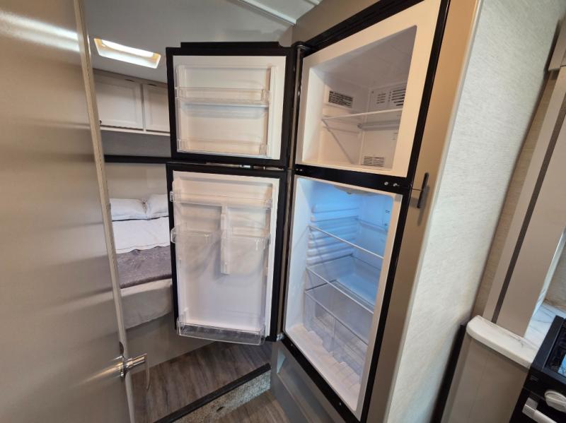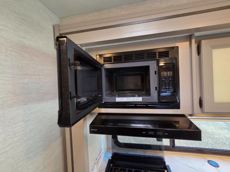 From the moment you step inside, the Coleman M-28CM impresses with a well-laid-out interior that maximizes space and comfort. The living area features a cozy sofa and dinette, ideal for family meals, movie nights, or gathering with friends. The fully equipped kitchen includes solid-surface countertops, a three-burner range, microwave, and refrigerator — everything you need to prepare meals on the go without missing a moment of the adventure.