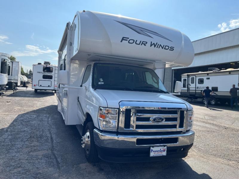 With any Four Winds Class C gas motorhome, you can travel in a trustworthy Ford E-Series chassis with 325HP. Each is built with welded sidewall cage construction and a welded tubular aluminum roof, a one-piece fiberglass cap, and includes a slick fiberglass exterior with graphics package for style and years of enjoyment on the open road. Inside, you will enjoy the well-equipped kitchen, the spacious bathroom, the sleeping accommodations and the Winegard ConnecT 2.0 WiFi/4G/TV antenna that allows you to stay connected. With several floorplans to choose from and options to add, you will surely find one that fits your family's needs or your friend's approval. Choose today!