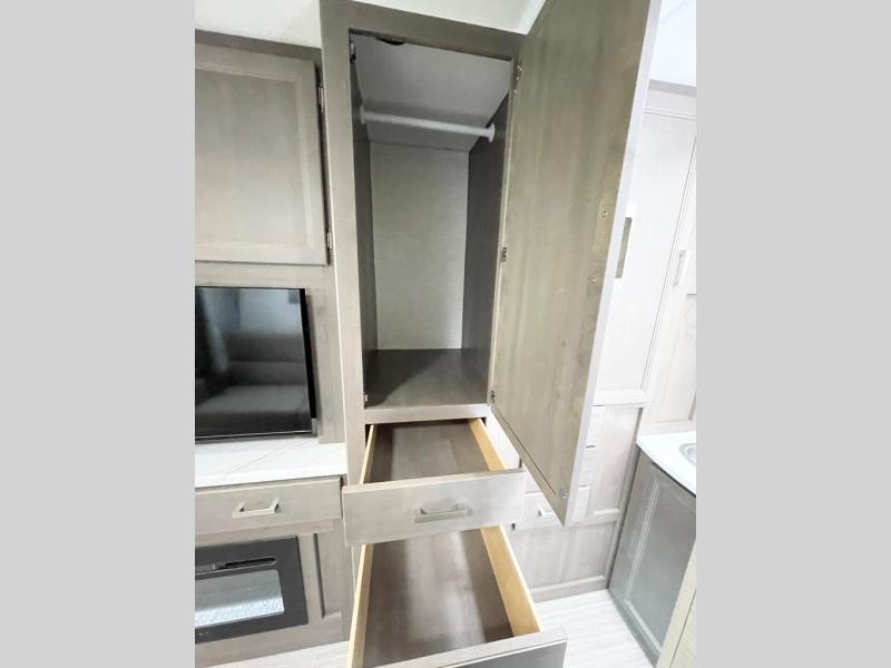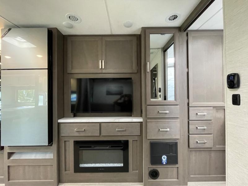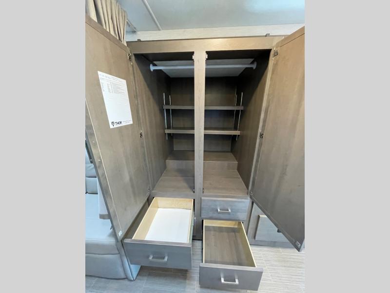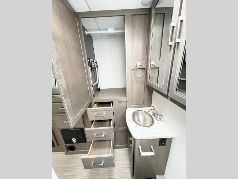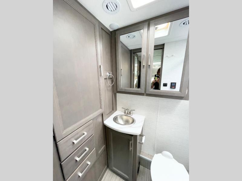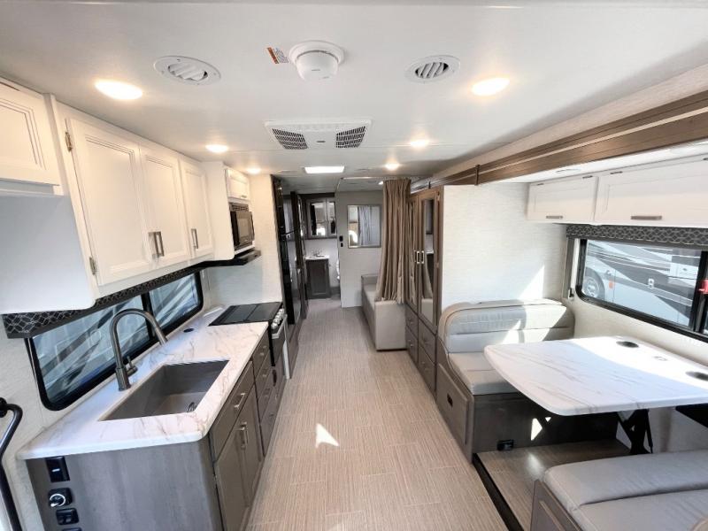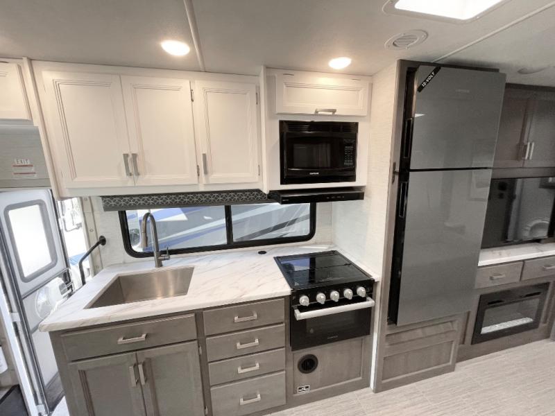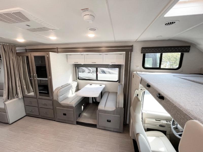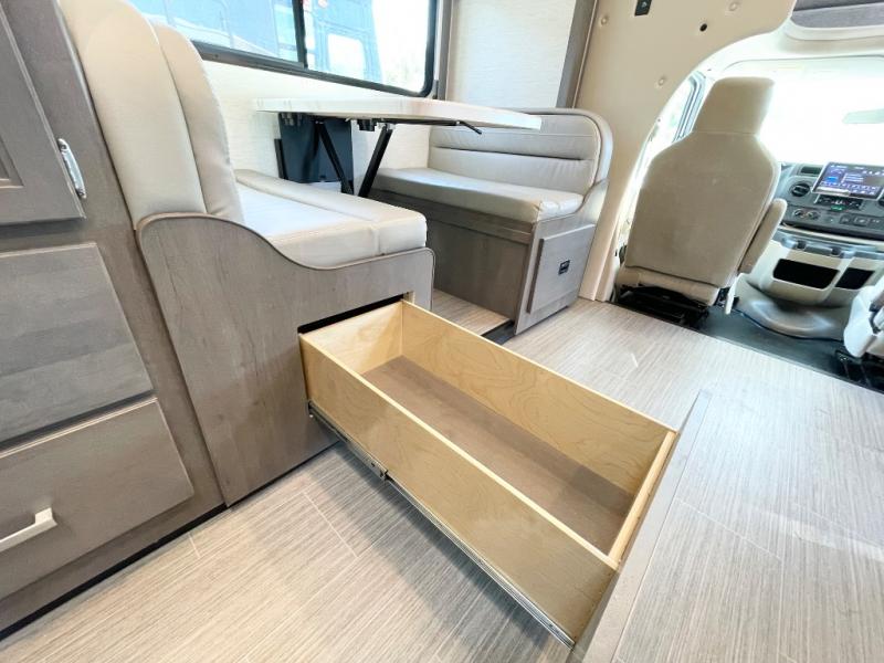 AUTOMOTIVE & COCKPIT • Ford® E-Series Chassis 7” Touchscreen Dash Radio, Apple CarPlay™, Android Audio®, Emergency Start Switch on Dash, Keyless Entry with Back-Up Monitor (19HE, 21HE, 22HZ & 25HZ) • Ford® E-Series Chassis - 10” Touchscreen Dash Radio, Apple CarPlay™, Android Audio® with Back-Up Monitor (27HE, 28AE, 28HE & 31FE) • Ford® E-Series Chassis - Touch N’ Go Control™ Panel: Tank Levels, Generator AGS, Emergency Start Switch, Slideout Controls, Keyless Entry with Bluetooth® (27HE, 28AE, 28HE & 31FE) • SiriusXM® Tuner & Antenna • Tilt Steering Wheel • Ford® E-Series Chassis - Steering Wheel with Audio & Camera Control (27HE, 28AE, 28HE & 31FE) • Deluxe Exterior Mirrors • Power Windows & Door Locks • Swivel Captain’s Chairs - Ford® E-Series Chassis Only (27HE) • Cruise Control • Map Light • Windshield Privacy Curtain • Aluminum Running Boards (27HE, 28AE, 28HE & 31FE • Valve Stem Extenders • Stainless Steel Wheel Liners • LED Taillights INTERIOR • Residential Vinyl Flooring • Rubber Tread Entry Steps with Lighted Step Well • Hard Vinyl Ceiling • LED Lighting • Ceiling Ducted Air Conditioning System (25HZ, 27HE, 28AE 28HE & 31FE) • Cab-Over Sleeping Area with Cup Holders and Telescoping Bunk Ladder • Ceiling Vent in Cab-Over Bunk • Flat Panel Cabinet Doors with Black Nickel Hardware • Pressed Laminate Countertops • Dream Dinette Booth (21HE, 22HZ, 25HZ, 27HE, 28AE, 28HE & 31FE) • Rear U-Shaped Dinette with Single Pedestal Leg Table (19HE) • Single Child Safety Tether in Dinette Booth (28AE, 28HE & 31FE) • Dual Forward Facing Child Safety Tethers in Dinette (21HE, 22HZ & 25HZ) • Dual (One Forward Facing/One Rear Facing) Child Safety Tethers in Dinette (27HE) • Wireless Phone Charger with USB Charging Port on Dinette Table Top (27HE, 28AE, 28HE & 31FE) • Leatherette Sofa with Queen Size Murphy Bed Conversion (27HE) • Leatherette Jack-Knife Sofa (28AE, 28HE & 31FE) • Window Privacy Shades • Full Extension Soft Close Metal Ball-Bearing Drawer Guides • Electric Fireplace with Remote Control (27HE) • Ceiling Vent at Dinette Location (19HE) KITCHEN • 12-volt Refrigerator with Auto Generator Start • 2-Burner Gas Cooktop with Glass Cover (19HE, 21HE, 22HZ & 25HZ) • Recessed 3-Burner Gas Cooktop/Oven with Glass Cover (27HE, 28AE, 28HE & 31FE) • Range Hood with Task Lighting Above Cooktop • Microwave Oven (27HE, 28AE, 28HE & 31FE) • Convection Micowave Oven with Air Fryer (19HE, 21HE, 22HZ & 25HZ) • Flip-Up Countertop Extension (19HE, 21HE, 22HZ & 25HZ) • Pop-Up Countertop Outlet & Charging Center for Electronics (27HE, 28HE & 31FE) • Pantry Cabinet (31FE) • Kitchen Waste Basket (27HE, 28AE, 28HE & 31FE) • Large Single Bowl Stainless Steel Sink, Single Handle Faucet & Pull-Down Sprayer with Stainless Steel Sink Cover • Kitchen Countertop Accent Lighting (27HE, 28AE, 28HE & 31FE) • 12-volt Ceiling Vent w/Under Cabinet Switch (21HE, 22HZ, 25HZ, 27HE, 28AE, 28HE & 31FE) BEDROOM & BATHROOM • Full Size Bed (21HE) • Queen Size Bed (22HZ, 28AE, 28HE & 31FE) • Queen Size Murphy Bed/Sofa (27HE) • Twin Beds Convert to Full Unit Width Bed (25HZ) • Bunk Beds with Telescoping Ladder (31FE) • Bedspread (21HE & 22HZ) • Bedspread & Pillow Shams (27HE, 28AE, 28HE & 31FE) • Headboard (28AE & 28HE) • USB Charging Center for Electronics • 12-volt Outlet for CPAP Machine • Foot Flush Toilet • Stainless Steel Bathroom Sink • Robe/Towel Hooks in Bathroom • Shower with Curtain (19HE, 21HE, 22HZ & 25HZ) • Shower with Curved Anti-Microbial Curtain (27HE, 28AE & 28HE) • Shower with Glass Door (31FE) • Skylight in Shower • Power Bath Vent (19HE) • 12-volt Ceiling Vent in Bath with Under Cabinet Switch (21HE, 22HZ, 25HZ, 27HE, 28AE, 28HE & 31FE) ENTERTAINMENT • 32” Smart TV on Manual Swivel in Cab-Over (19HE, 21HE, 22HZ & 25HZ) • 40” Smart TV on Manual Swivel in CabOver (28AE) • 40” Smart TV in Living Area (27HE, 28HE & 31FE) • Bedroom TV Prep (22HZ, 25HZ, 28AE, 28HE & 31FE) • Gear Net Storage in Bunk Area (31FE) • Digital TV Antenna • Satellite Mounting Backer in Roof • Exterior 12-volt 32” Smart TV on Swivel Bracket with Bluetooth® Built in Sound Bar & Radio (28HE & 31FE) ELECTRICAL & PLUMBING • 4.0 kw Gas Generator • 30-amp Shoreline Power Cord • Automatic Transfer Switch with Power Protection • Automatic Shoreline-to-Generator Transfer Switch • Systems Control Center (19HE, 21HE, 22HZ & 25HZ) (28AE - Chevy Chassis Option) • Single Roof Air Conditioner (19HE, 21HE, 22HZ & 25HZ) • High-Output Single Roof Air Conditioner (27HE, 28AE & 28HE) • Dual Roof Air Conditioners (31FE) • 12-volt Auxiliary House Battery • Battery Disconnect Switch • Battery Tray for Four (4) Batteries (21HE, 22HZ, 25HZ, 27HE, 28AE, 28CL & 31FE) • Solar Prep (19HE, 21HE, 22HZ & 25HZ) • 100-watt Solar Charging System with Power Controller (27HE, 28AE, 28CL & 31FE) • Tankless Water Heater • Outside Shower (31FE) • Exterior Water Spray Port (27HE, 28AE & 28HE) • 1” Fresh Water Tank Drain • 360° Siphon® RV Holding Tank Vent Cap • Black Tank Flush System • Holding Tank Heat Pads Prep (19HE, 21HE, 22HZ & 25HZ) • Holding Tanks with Heat Pads (27HE, 28AE, 28HE & 31FE) • Exterior LP Connection (27HE, 28AE, 28HE & 31FE) • Enclosed Sewer Area for Sewer Tank Valves (31FE) Class C Featured Highlights Specifications 19HE 21HE 22HZ 25HZ 27HE 28AE 28HE 31FE