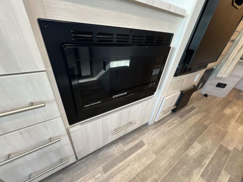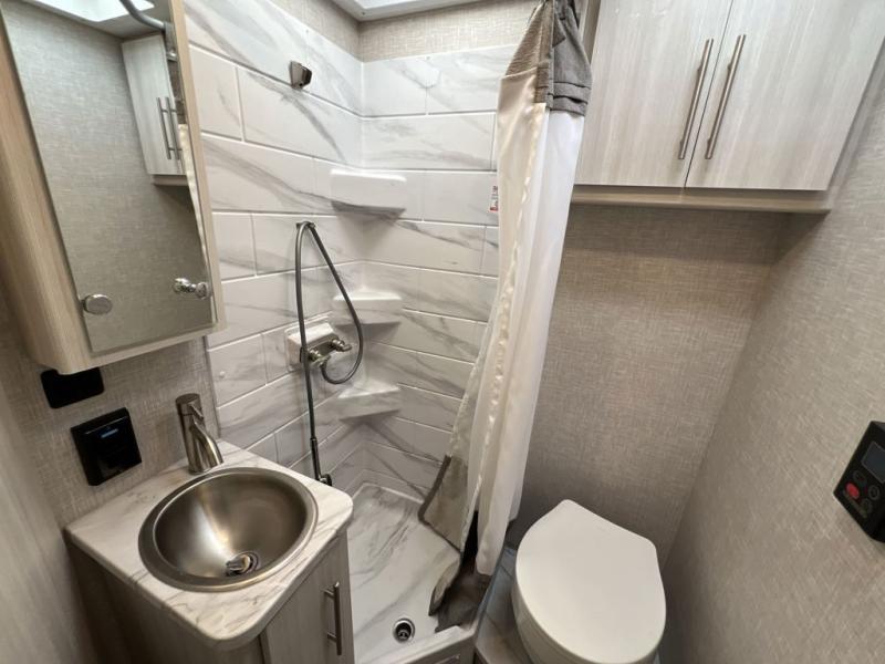 This is the perfect coach for two whether you are a couple or not! This Gemini AWD model features a set of twin beds that can easily convert to a king bed if you like. Enjoy the added space thanks to a slide out jack-knife sofa with a removable pedestal table. This table is handy for dining when you are stopped. You will appreciate the kitchen amenities for light meals and snacks while on the road, plus the onboard bath offers a 27" x 27" radius shower, toilet and sink which is convenient as well. There are also two 32" TVs in this coach, one over the side entry opposite the seating in front, and one back in the sleeping area at the foot of the roadside twin bed. A built-in skylight offers the ability to stargaze in the front of the coach on a clear night.