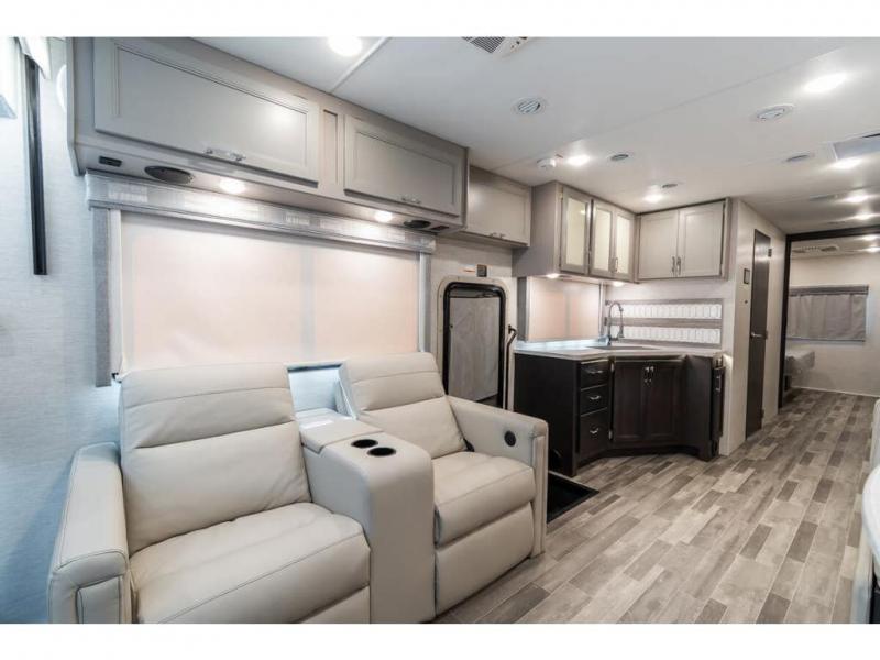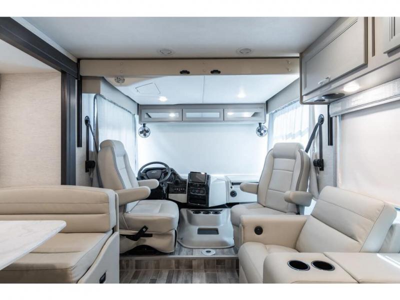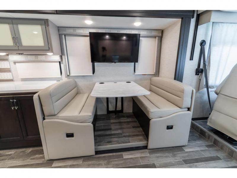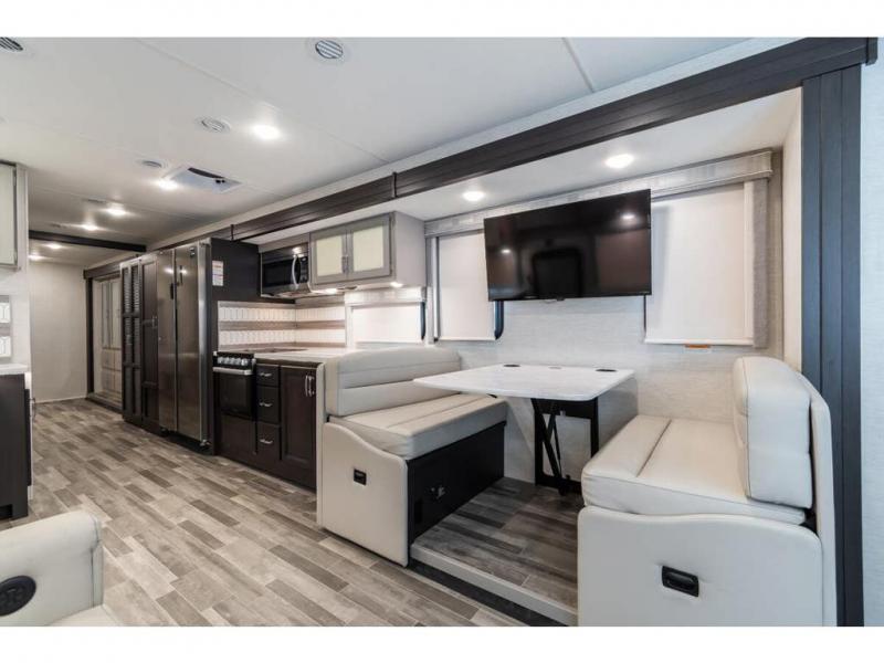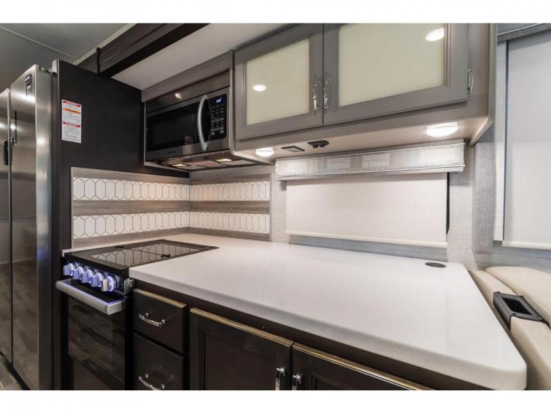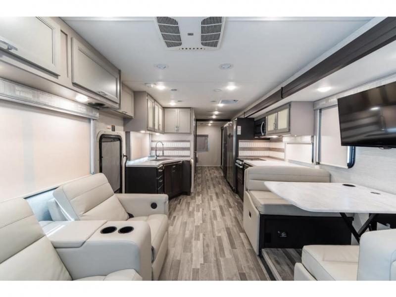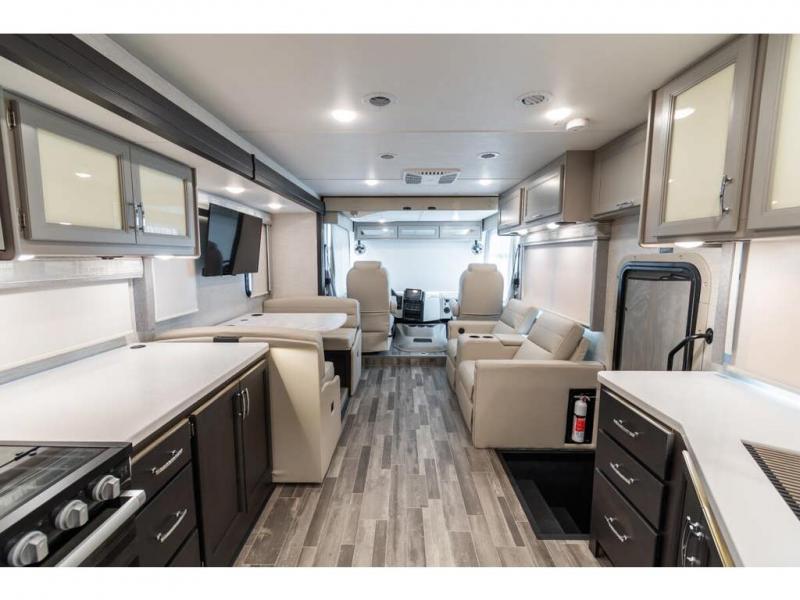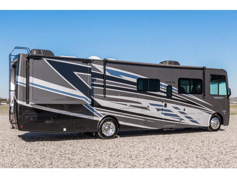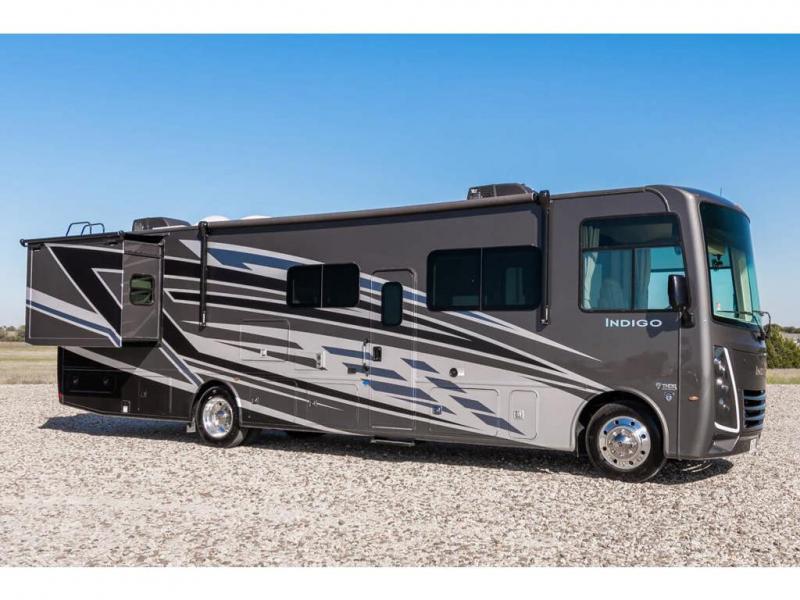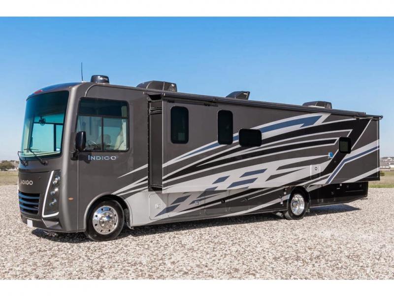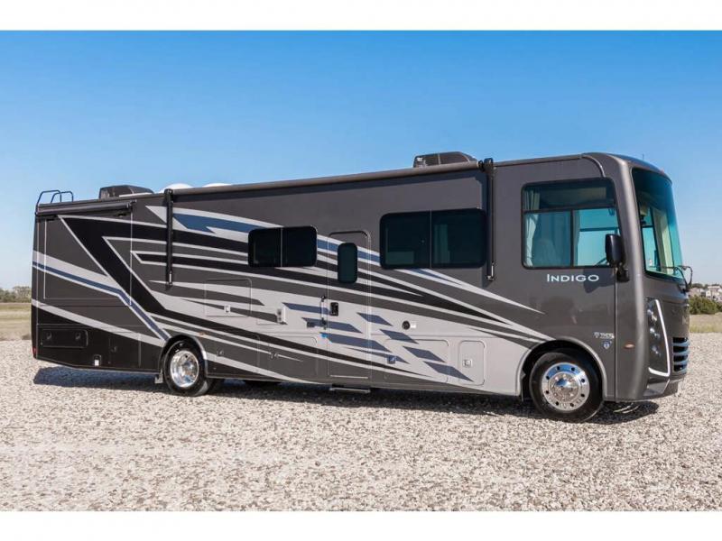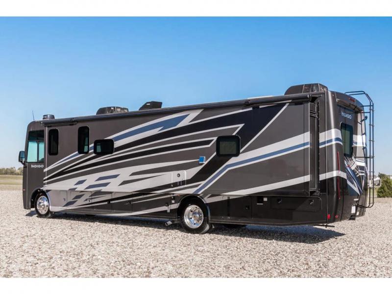 There's something for everyone in the Thor Motor Coach Indigo Class A gas motorhome! Built on the Ford F-53 chassis, with family-friendly designs and features that will make your life easier, these are worth considering. The 7.3L PFI V8 engine offers 335HP and 468 lb.-ft. of torque for power you can rely on, and the one-piece domed roof membrane is ultra durable. Residential vinyl flooring throughout is comfortable and easy to care for, while the solid surface countertops make your kitchen look great. Multiple TVs means there's no fighting over what to watch, and the Winegard ConnecT 5.0 Wi-Fi extender will help keep you connected as you camp. Each model also includes a 300-watt solar charging system, dual 13,500 BTU roof A/C units, a tankless water heater, and many more hassle-free amenities!
