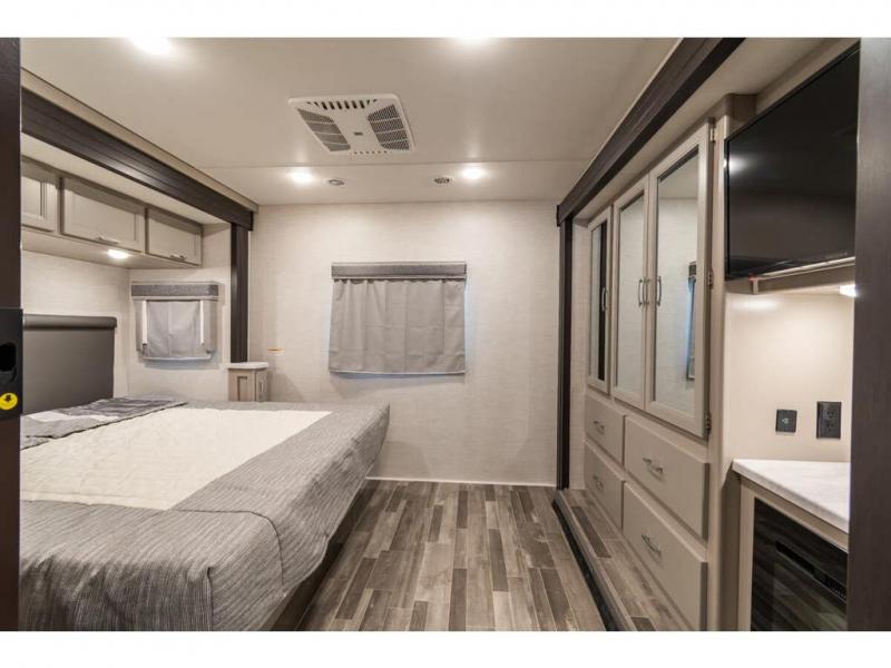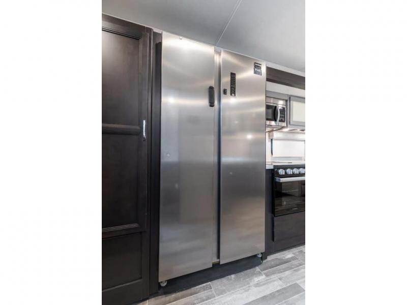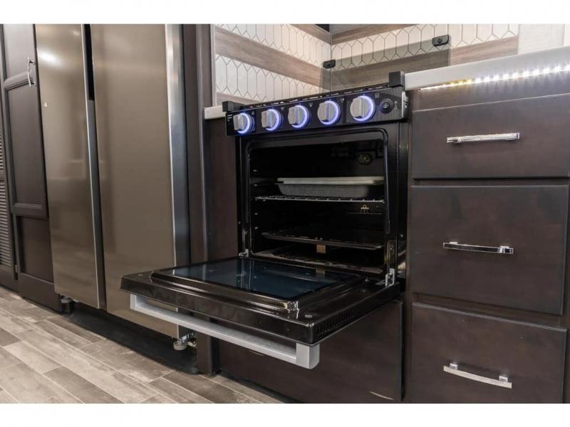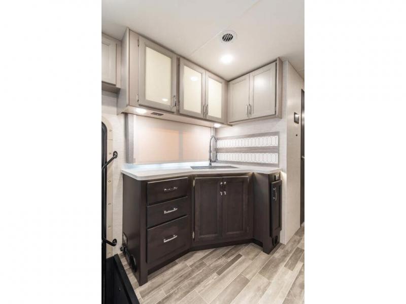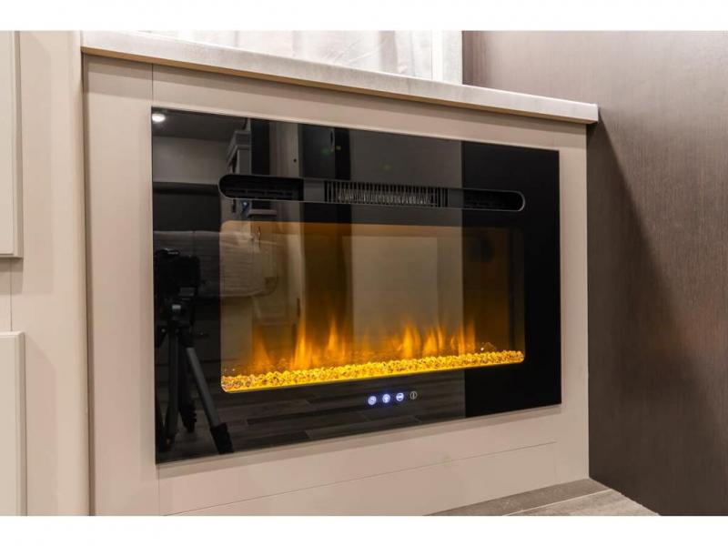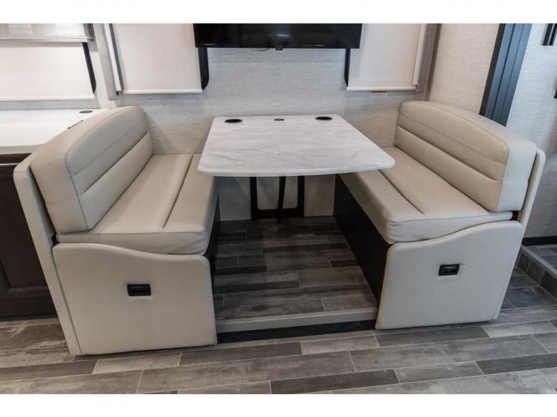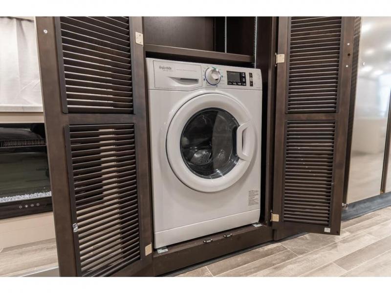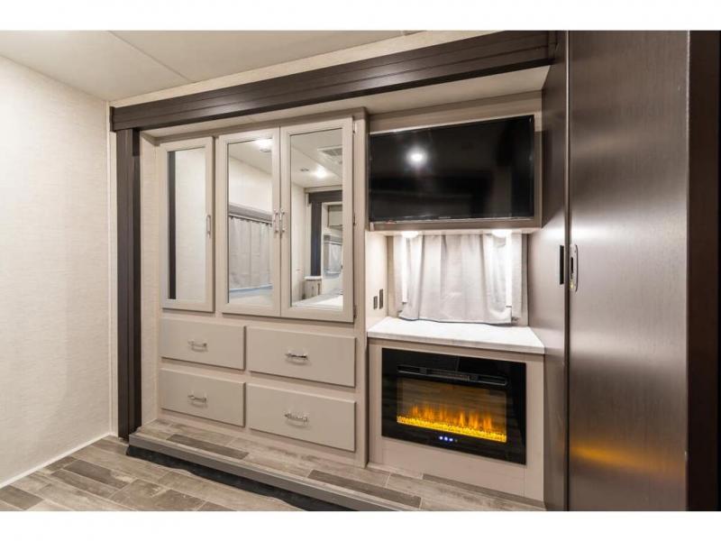 Pack your bags and head out on a great family vacation! You will enjoy your own privacy with the rear private bedroom which has a 72" x 76" king bed slide across from a closet and a 32" LED Smart TV plus a bedroom fireplace. The 48" x 74" bunk over cab is great for extra sleeping or storage space, plus the 70" dream dinette can also transform into extra sleeping spaces. After you have eaten some delicious scrambled eggs prepared on the three burner cooktop, you can head to the full bathroom to freshen up in the 36" x 30" shower, then kick your feet up on the theater seating with footrests. This model also includes a stackable washer and dryer prep right across from the full bathroom if you want to add those appliances!