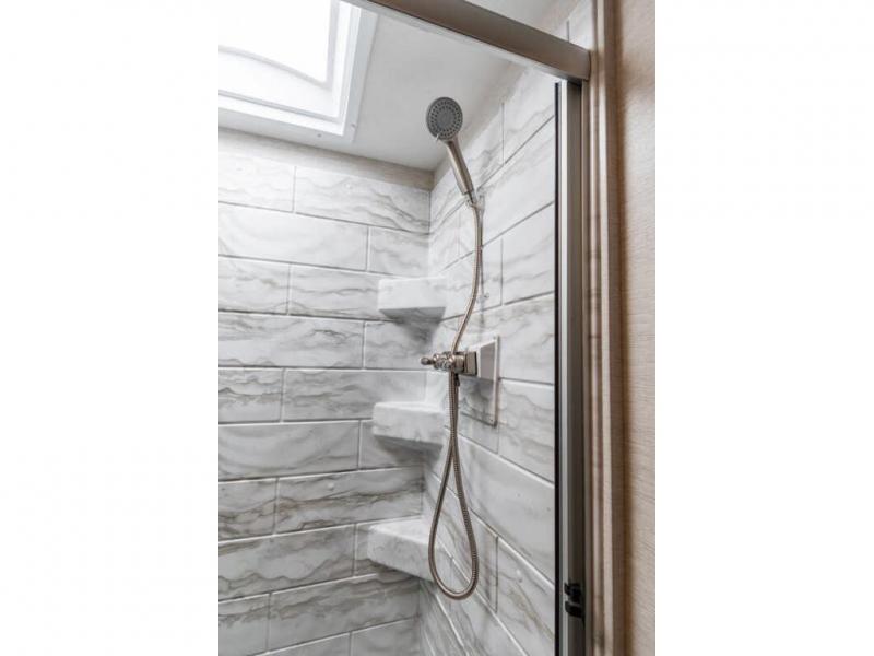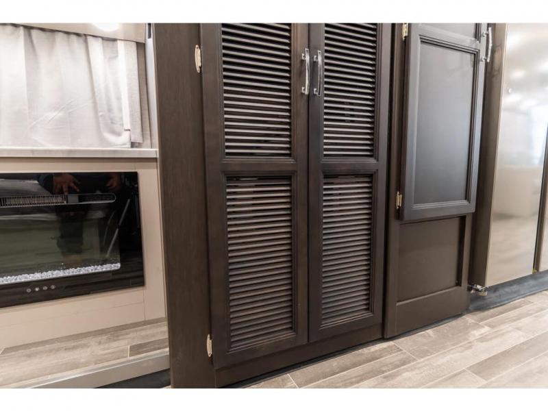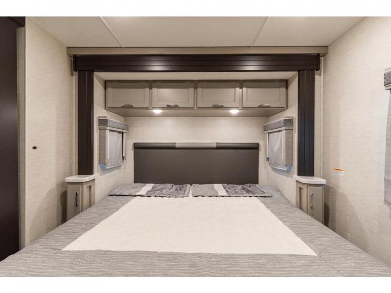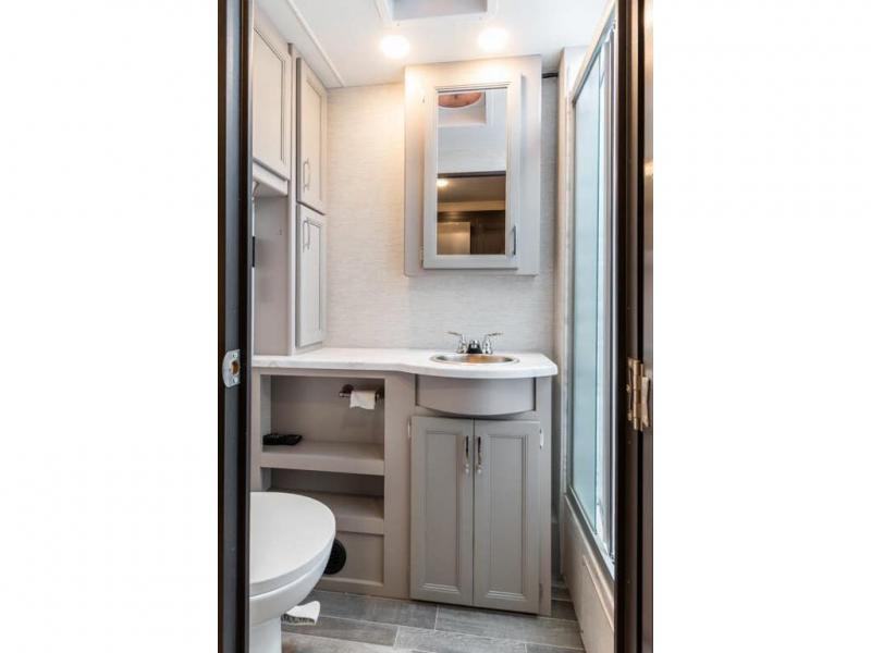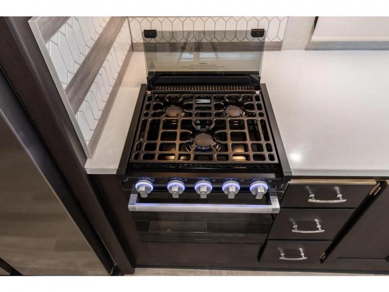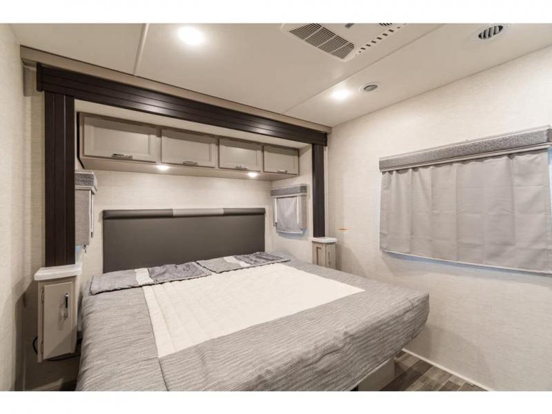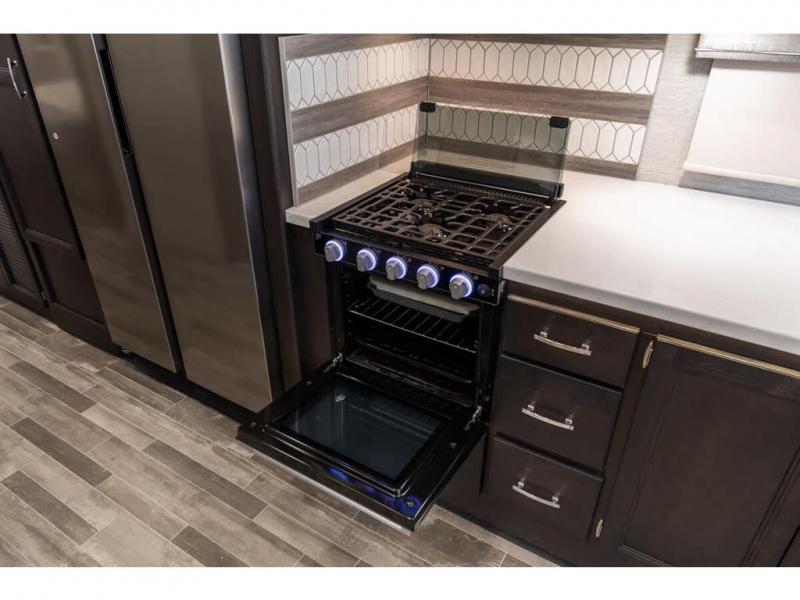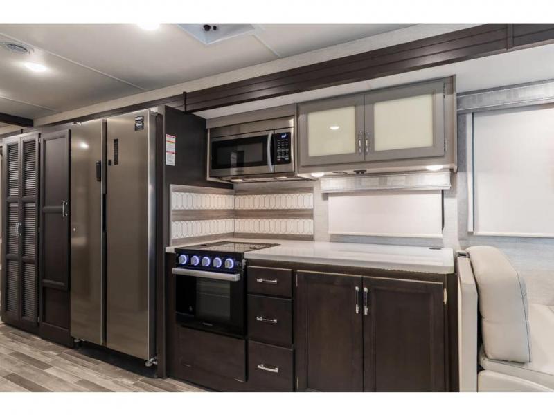 Pack your bags and head out on a great family vacation! You will enjoy your own privacy with the rear private bedroom which has a 72" x 76" king bed slide across from a closet and a 32" LED Smart TV plus a bedroom fireplace. The 48" x 74" bunk over cab is great for extra sleeping or storage space, plus the 70" dream dinette can also transform into extra sleeping spaces. After you have eaten some delicious scrambled eggs prepared on the three burner cooktop, you can head to the full bathroom to freshen up in the 36" x 30" shower, then kick your feet up on the theater seating with footrests. This model also includes a stackable washer and dryer prep right across from the full bathroom if you want to add those appliances!