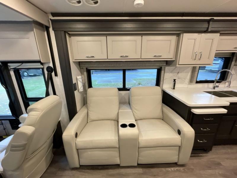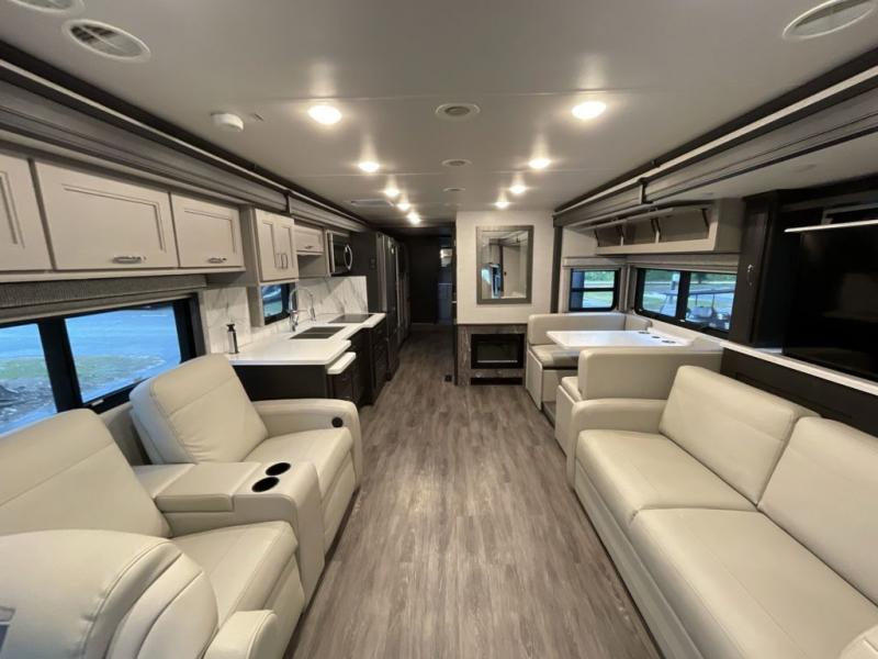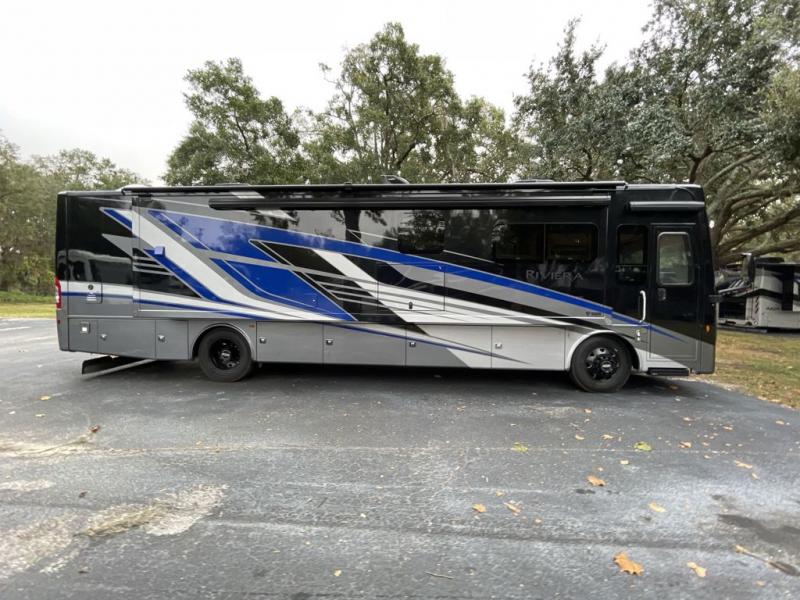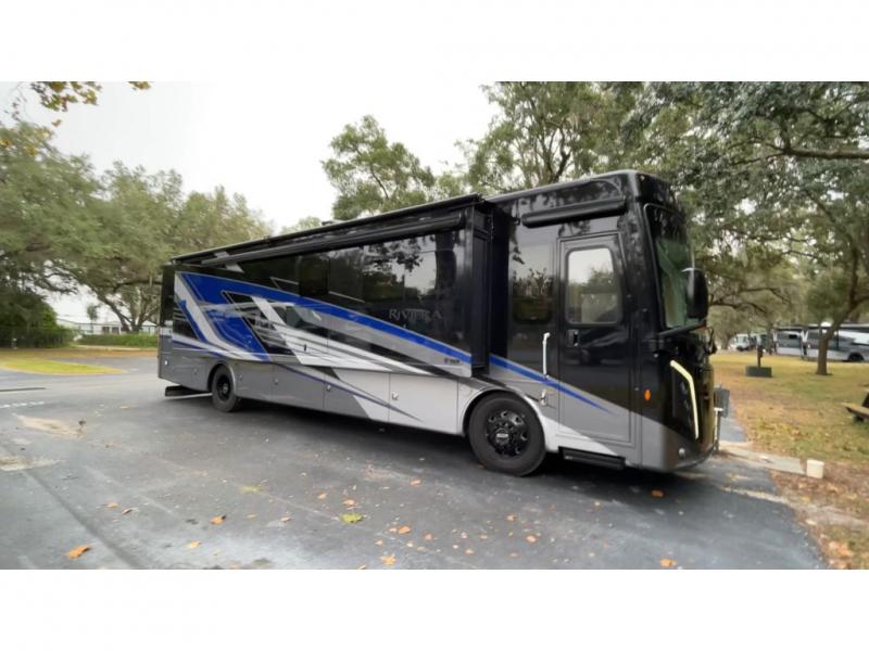 With any Riviera Class A diesel motorhome by Thor Motor Coach, you will enjoy a luxury home on wheels wherever you decide to roam! You will appreciate a capable Freightliner CS-S straight rail chassis with an Atlas foundation and better fuel mileage with the Cummins ISB-XT 6.7L diesel engine. There is a spacious basement pass-through storage for your camp gear, a powered patio awning with LED lighting, and an exterior 40" LED TV for outdoor movie nights. You will be able to enjoy your coach for years to come thanks to the durable construction materials that include a welded tubular steel floor, Vacu-Bond laminated roof, walls, and floor, plus a one-piece domed roof membrane. The elegant interior is designed with luxury vinyl tile flooring, "Wyndham" cabinetry with “Rake” style cabinet doors & nickel finish hardware. Some of the amenities you'll appreciate on each model include the RapidCamp+ multiplex wiring control system, a tankless water heater, and an Onan RV QD 6000 diesel generator. Enjoy your RV life with a Riviera Class A diesel coach!