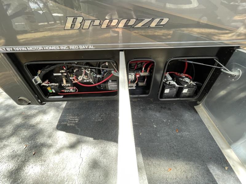 Every one of these Tiffin Motorhomes Allegro Breeze Class A diesel motorhomes are made to move you closer to your destination in true comfort! The rear diesel 340HP Cummins B6.7 engine will propel you while the smooth Reyco Granning air ride suspension provides a nimble ride and PowerGlide chassis holds it together. You will have warm water thanks to the Truma AquaGo Comfort instant water heater and the AquaView Showermiser system will save on water usage. You will love the stylish interior decor, along with handcrafted cabinetry and an engineered wood sub-flooring. The eight-step, full-body paint system comes with premium grade paints that are sealed with three layers of a clear coat that has ultraviolet protection, as well as an additional layer of high-performance film. Some other features that will make your trip easier include a tilt and telescoping steering wheel with integrated controls, a 7" high-definition monitor for the side and backup cameras, and electronic stability control. The optional Starlink prep will give you the option to stay connected as you're on the road, and the Lippert On-The-Go telescoping ladder is now standard for added convenience.